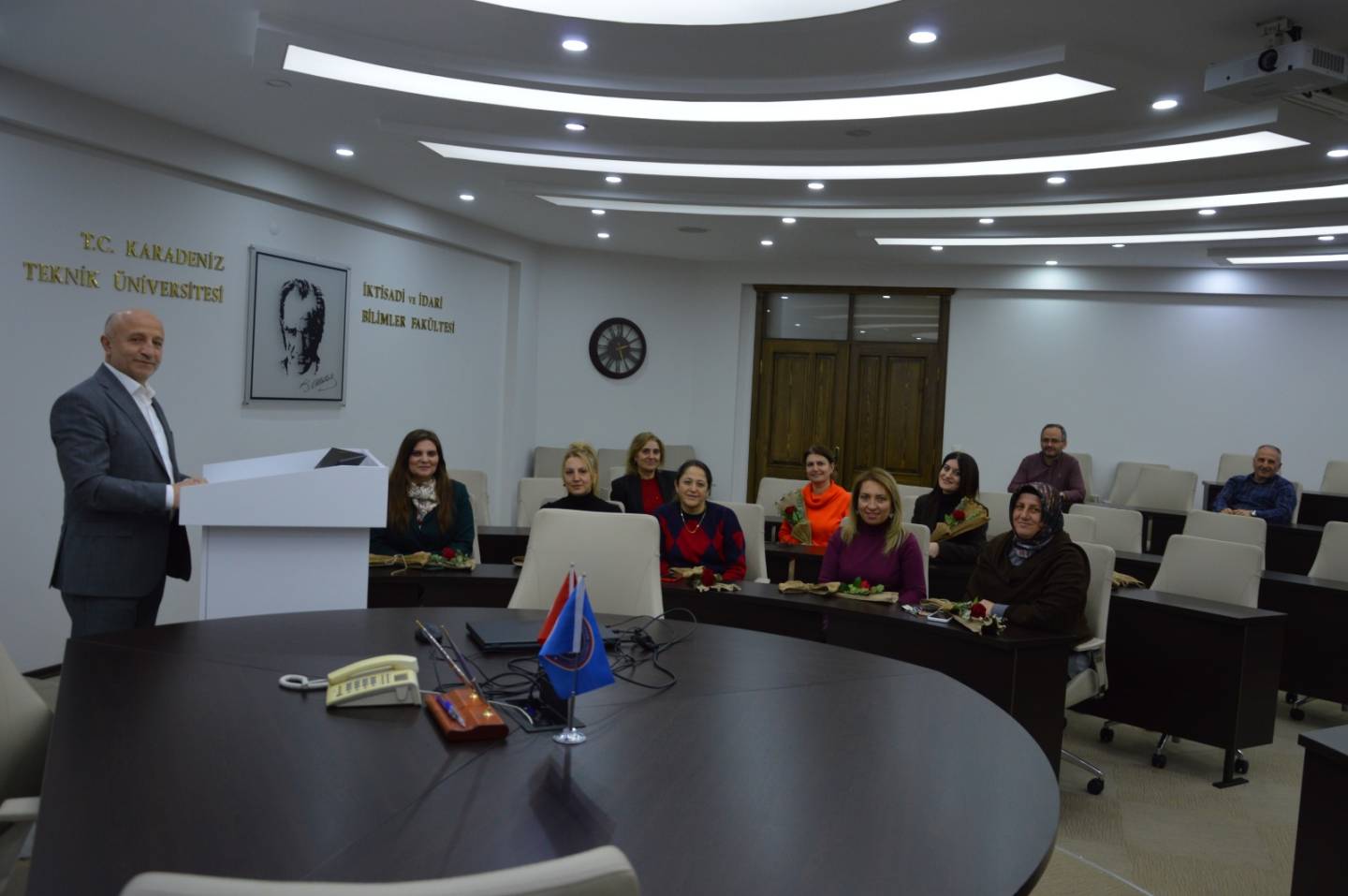 Karadeniz Teknik Üniversitesi İktisadi ve İdari Bilimler Fakültesi Dekanı Prof. Dr. Atila DOĞAN, 8 Mart Dünya Kadınlar Günü dolayısıyla fakültemizde görev yapan kadın personellerimizin Kadınlar Günü’nü kutladı.