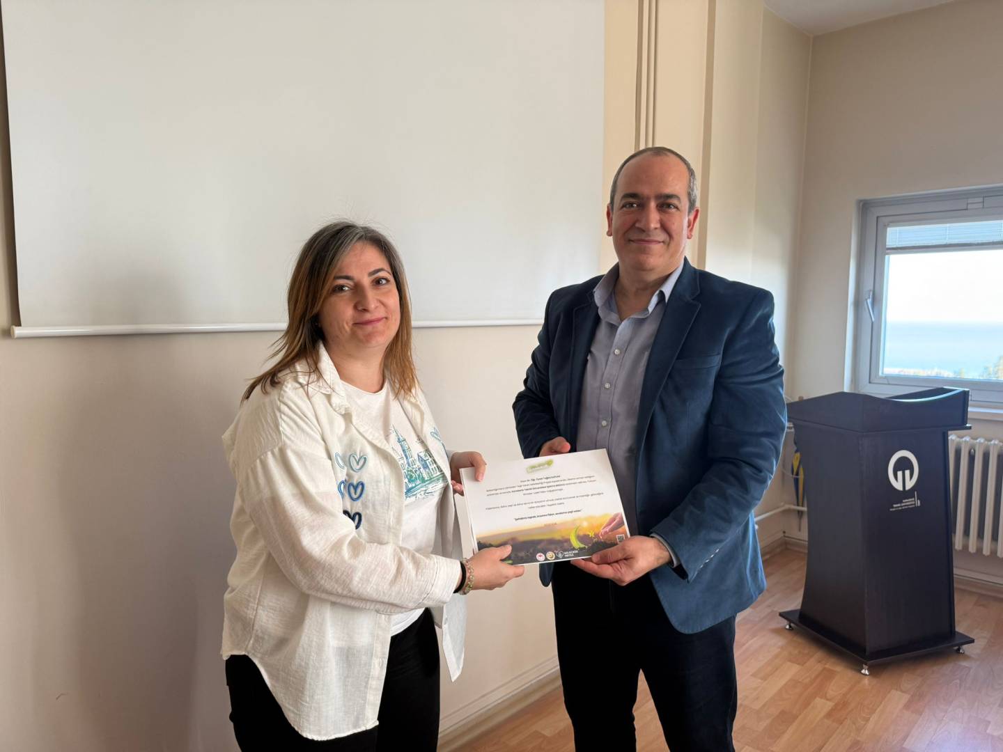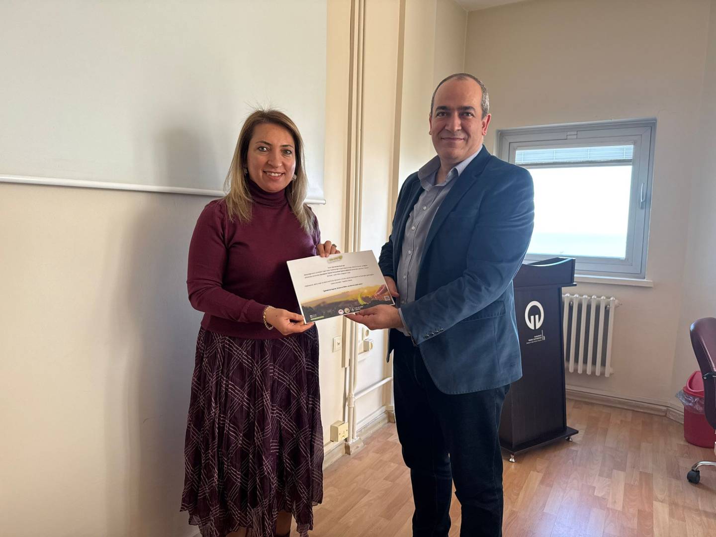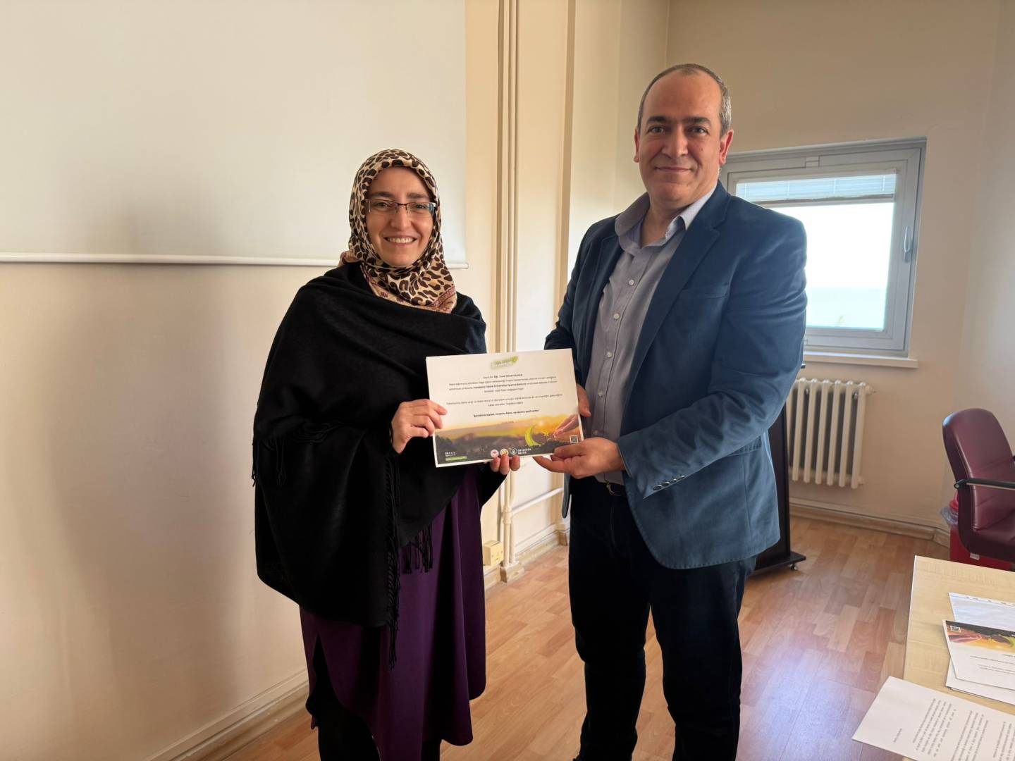 İşletme Bölümü toplantı salonunda gerçekleştirilen tebrik etkinliğinde Bölüm Başkanmız Prof. Dr. Ahmet KURTARAN tarafından fidan bağış sertifikaları personelimize takdim edildi.