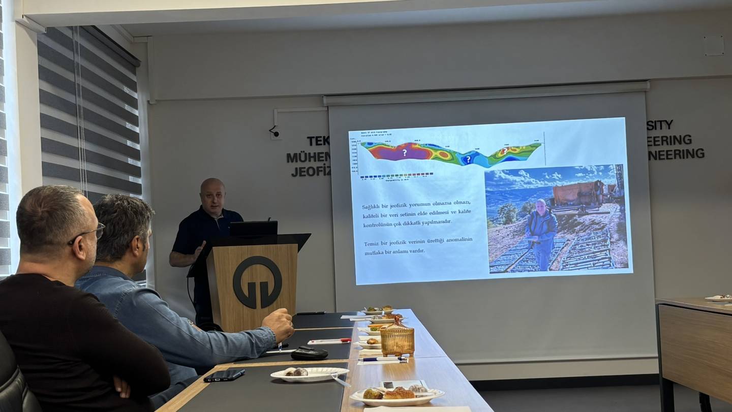TMMOB Jeofizik Mühendisleri Odası Trabzon Şb Bş. Yük. Müh. Kürşad Bekar tarafından "Jeofizik Elektrik Yöntemler ve Jeoloji ile İlişkilendirmeler" isimli seminer verilmiştir.