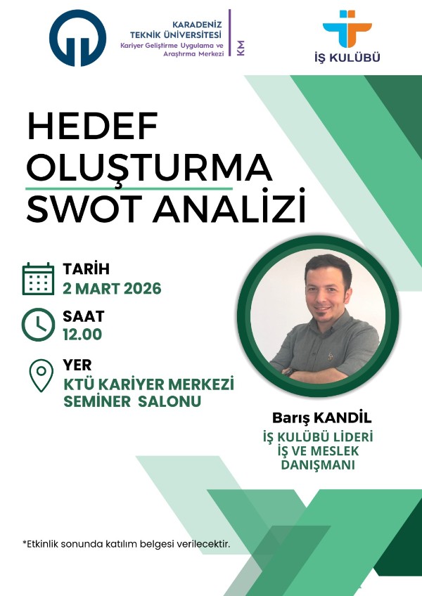 KTÜ Kariyer Merkezi Toplantı Salonunda gerçekleştirilecektir.