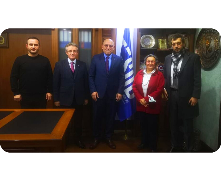 Cumhurbaşkanlığı İnsan Kaynakları Ofisi koordinasyonluğunda ve Karadeniz Teknik Üniversitesi Kariyer Geliştirme Uygulama ve Araştırma Merkezi ev sahipliğinde 4-5 Mart 2022 tarihlerinde Şenol Güneş Spor Kompleksi Medical Park Stadyumu’nda gerçekleştirilecek olan DOKKAF’22 için gerekli çalışmaların yürütülmesi kapsamında Trabzon Esnaf ve Sanatkarlar Odaları Birliği 22 Aralık 2021 tarihinde ziyaret edildi. KTÜ Rektör Yrd. Sayın Halil İbrahim OKUMUŞ, Kariyer Geliştirme Uygulama ve Araştırma Merkezi Müdürü Sayın Prof. Dr. Hülya KALAYCIOĞLU ve Müdür Yrd. Öğr. Gör. Ahmet KÜÇÜK, Trabzon Esnaf ve Sanatkarlar Odaları Birliği Başkanı Sayın Metin KARA’’yı makamında ziyaret ederek fuar hakkında istişarelerde bulunuldu. Yapılan ziyarette Trabzon Esnaf ve Sanatkarlar Odaları Birliği’nin fuara verebilecek oldukları destekler üzerinde karşılıklı fikir alışverişinde bulunuldu.