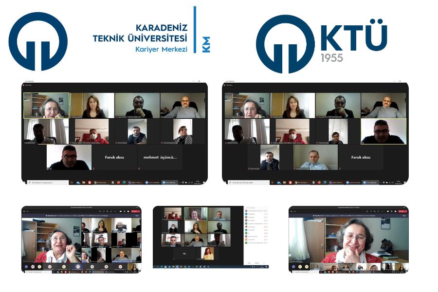 Kariyer Merkezimiz 2021 yılından itibaren yeni yapılandırma sürecine girmiş olup, ilk dış paydaş toplantısı 10.03.2021 tarihinde online olarak gerçekleştirildi. Çok sayıda meslek odası temsilcisinin katıldığı toplantıda, KTÜ öğrenci ve mezunları ile ilgili birlikte neler yapılabileceği konuları istişare edilip, ortak çalışma alanları ve öğrenci ve mezunlar için staj ve iş imkanlarının paylaşımı, öğrencilik için mentörlük (kariyer danışmanlığı) ortaklığı gibi geleceğe yönelik stratejiler ele alındı. Bu kapsamda Cumhurbaşkanlığı İnsan Kaynakları Ofisi’nin desteği üzerine tüm üniversitelerde gerçekleştirilen Kariyer Planlama dersi için, bahsi geçen dış paydaşların da üniversitemizde verilecek olan derse aktif olarak katkı sağlayacağı belirtildi. Ayrıca, kurumsal ikili protokoller yapılması konusunda da ilk adım atılmış oldu.