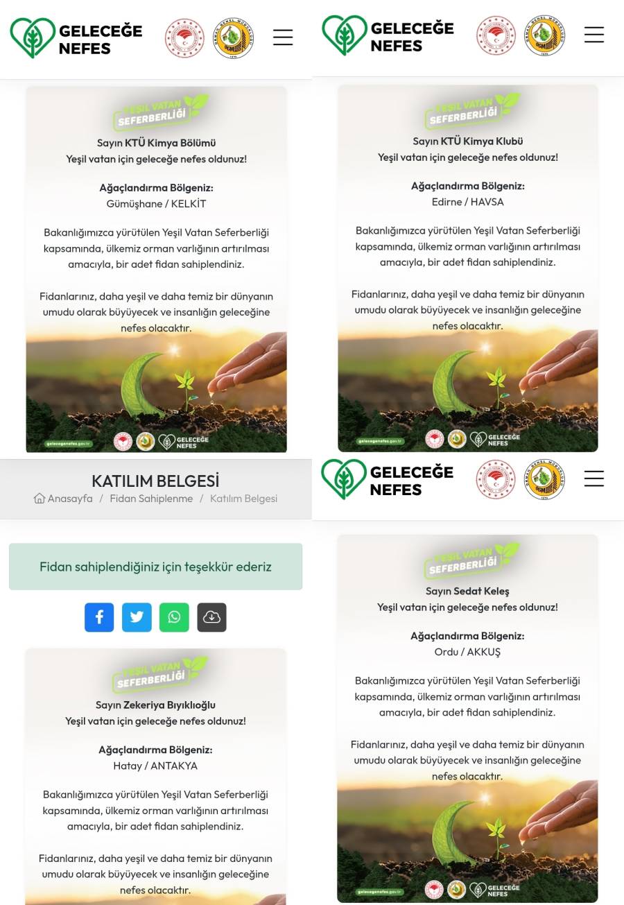 KTÜ Kimya Bölümü olarak, "Sürdürülebilir kalkınma hedeflerine yönelik yıl içerisinde düzenlenen etkinlik sayısı" kapsamında 27.12.2025 Tarihinde, Yeşil Vatan Seferberliği kapsamında Trabzon ili için fidan bağışında bulunarak bir sosyal sorumluluk çalışmasına imza attık.