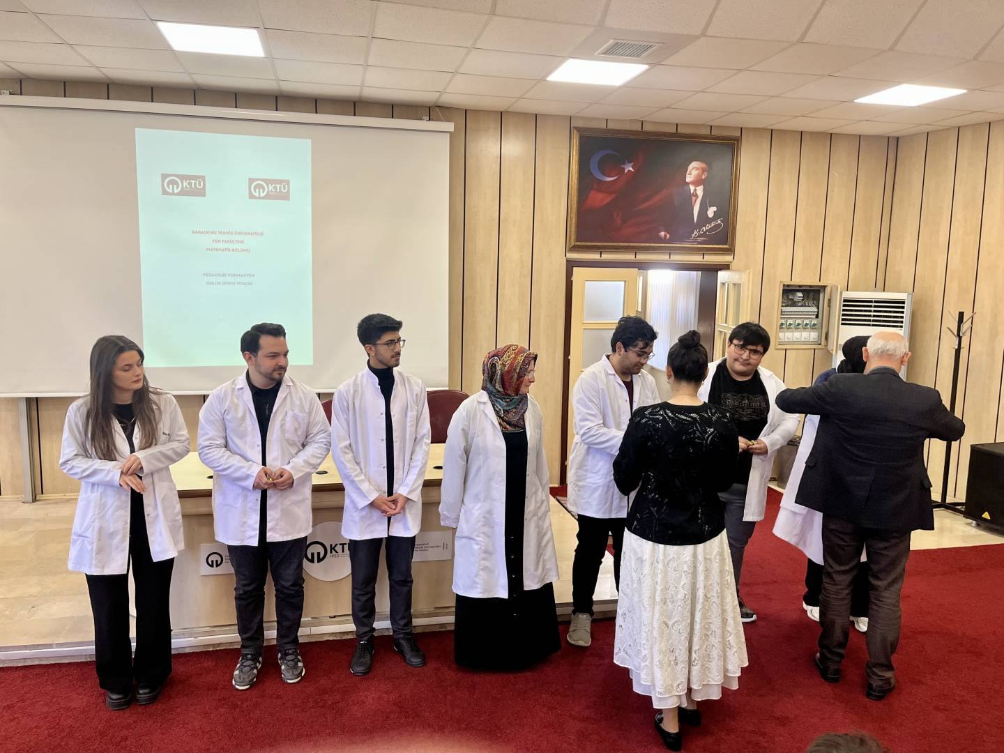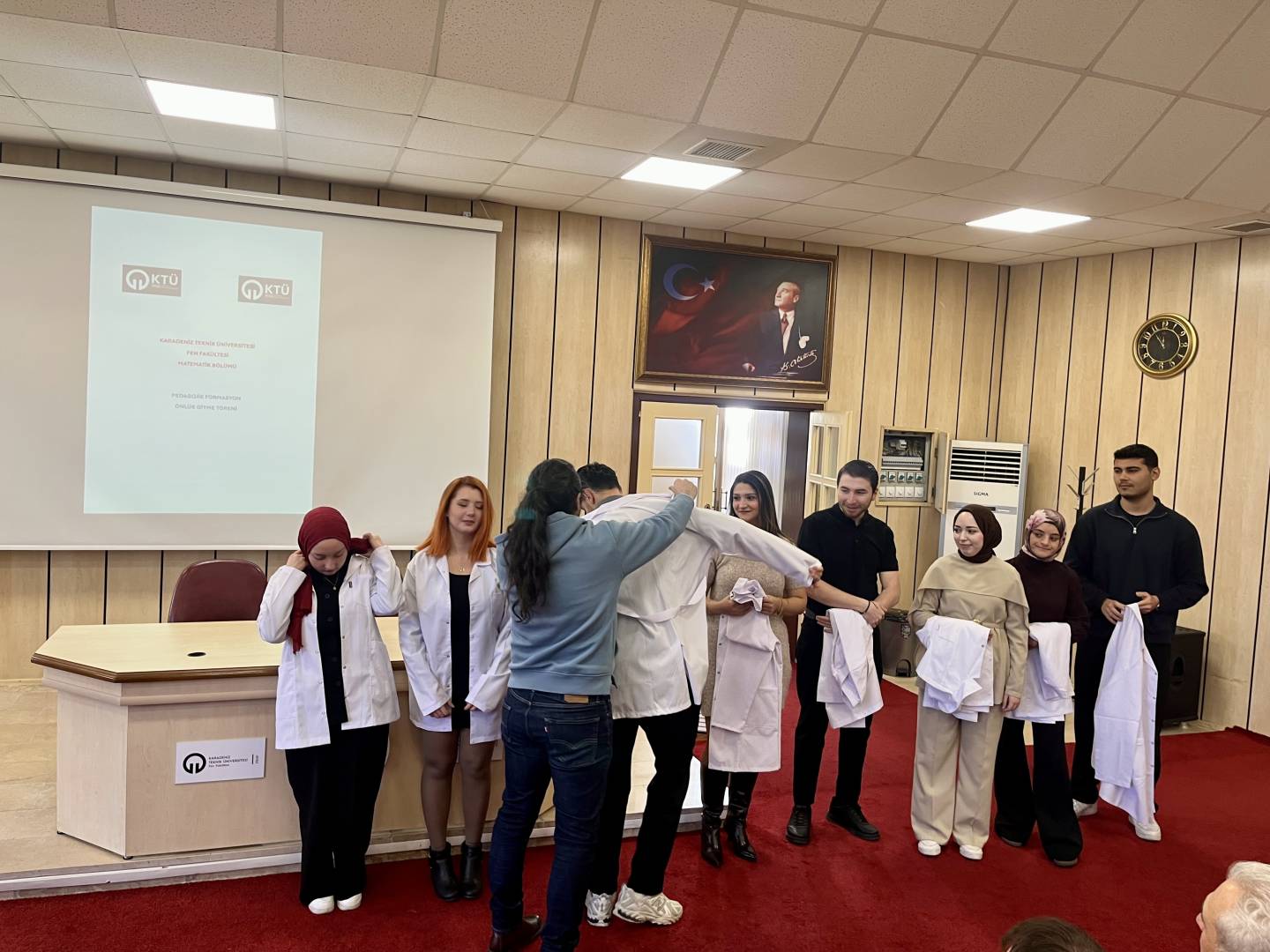 Bölümümüz öğretim üyeleri ve pedagojik formasyon öğrencilerimizin bir araya geldiği "2026 Yılı Pedagojik Formasyon Beyaz Önlük Giyme Töreni" 5 Mart 2026 tarihinde Fakültemiz Nazım Terzioğlu Amfisinde gerçekleştirildi. Yapılan törende öğrencilerimiz profesyonel hayatları öncesinde mesleğimizin de önemli bir sembolü olan beyaz önlüklerini akademik danışmanlarının eşliğinde giymenin heyecan ve gururunu yaşadılar.