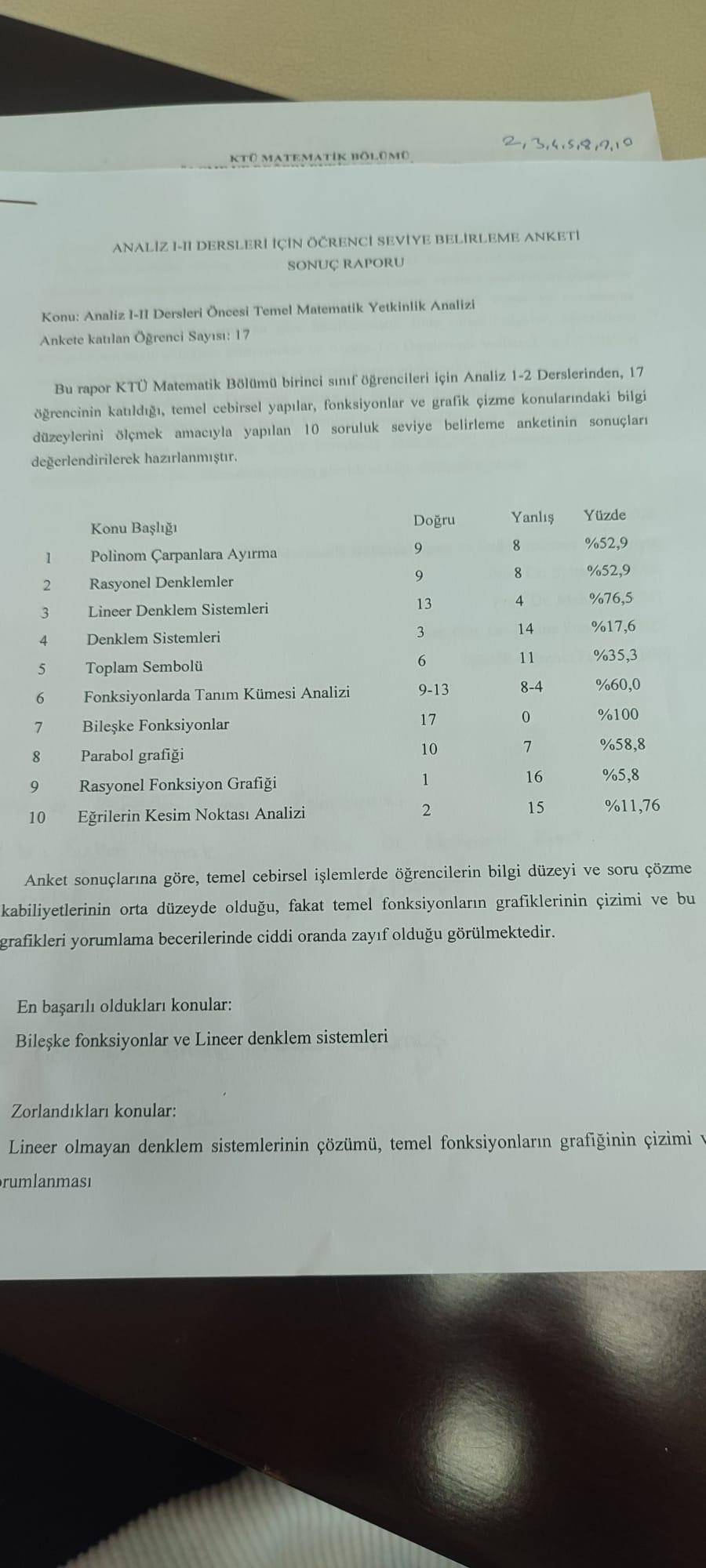 - (31 MART 2026)Öğrencilerin Analiz-II dersi kapsamında yapılan anket sonucundan elde edilen verilen neticesinde sorumlu oldukları konulara yönelik eksikliklerini gidermek ve bazı konulara ilave amaçlı kapsamlı soru çözüm uygulamaları gerçekleştirilmiştir.