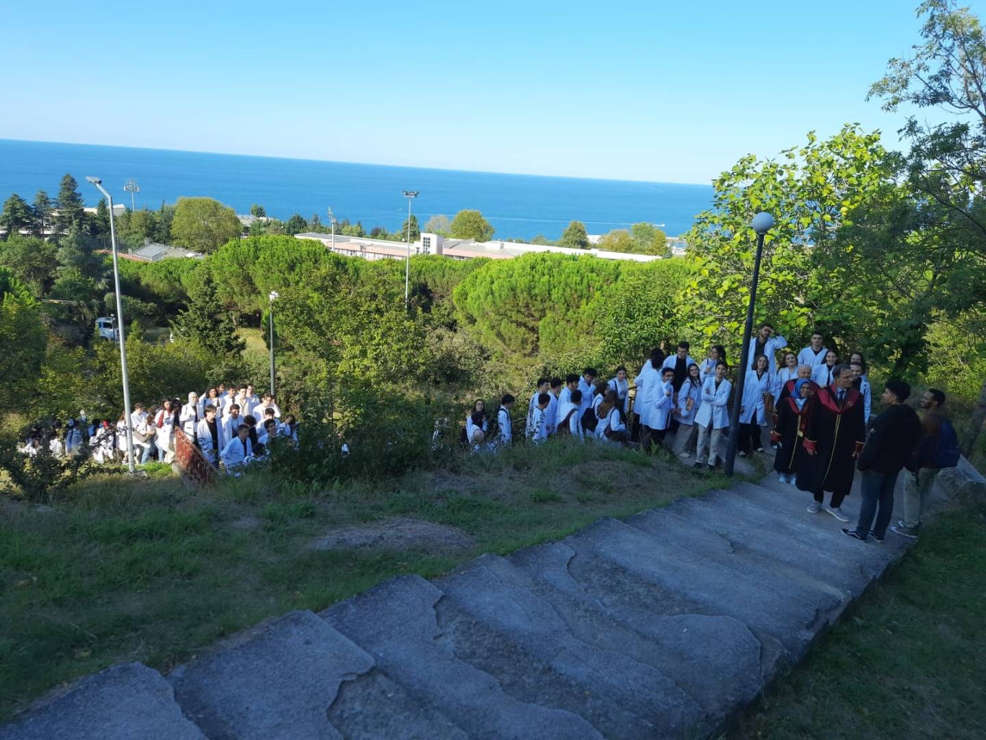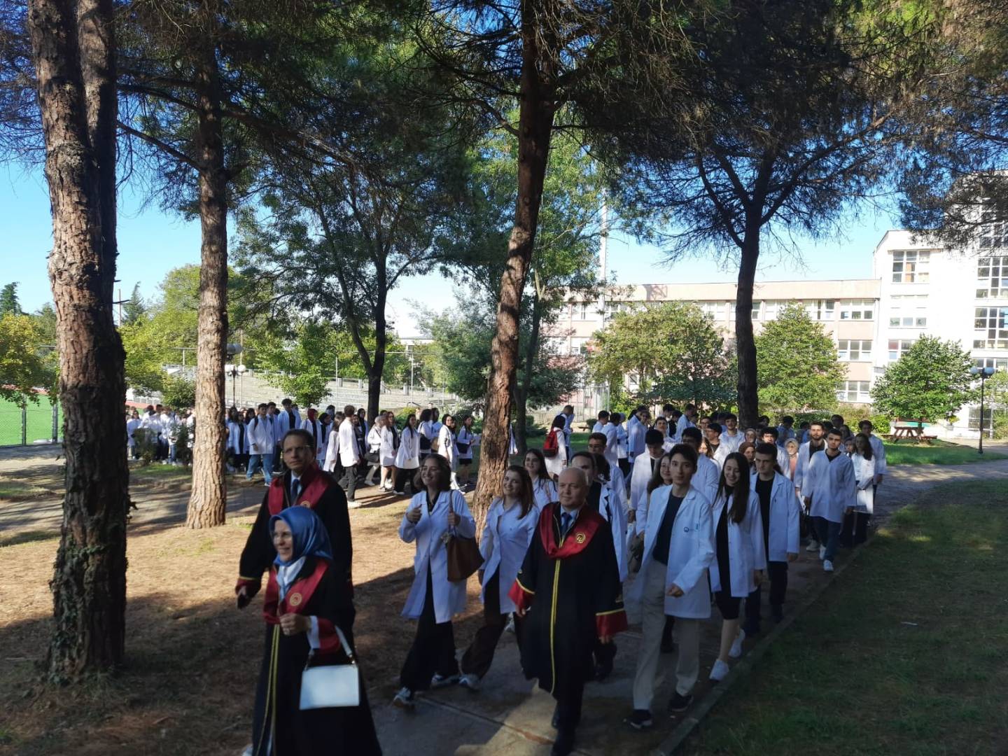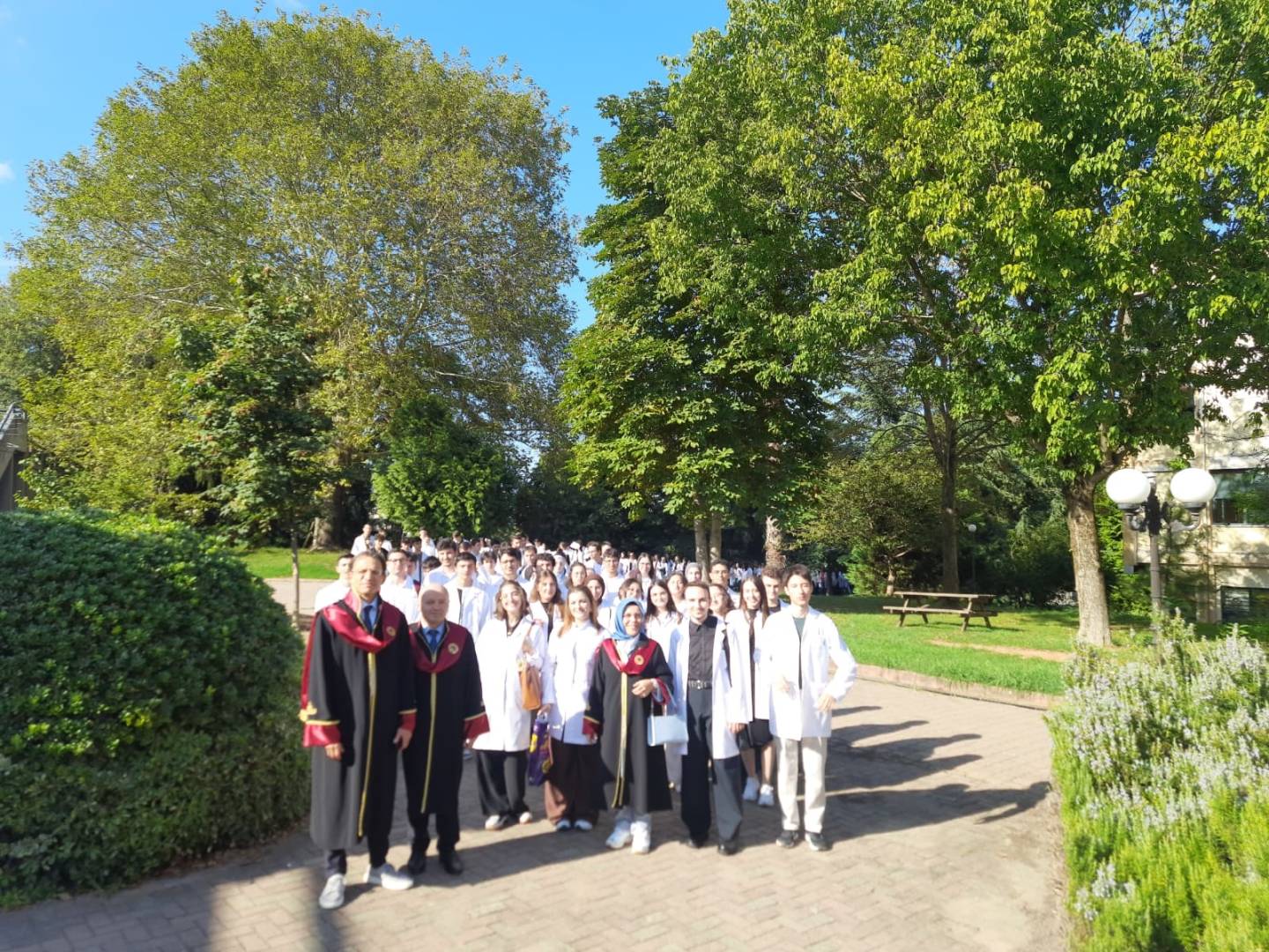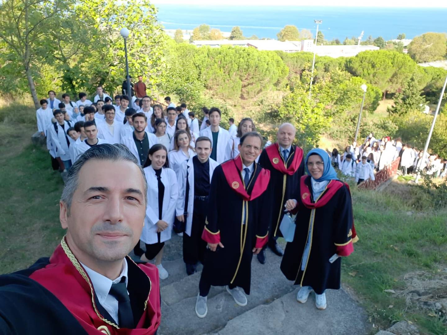 Öğrencilerimiz, Dekanımız Prof. Dr. Sevdegül AYDIN MUNGAN, Dekan Yardımcılarımız Prof. Dr. Turan SET ve Prof. Dr. Ümit ÇOBANOĞLU ve Dönem 1 Koordinatörü Dr. Öğr. Üyesi Ali Faruk ÖZYAŞAR'ın katılımlarıyla "Hekimlik Hayatının İlk ve En Kolay Yokuşu" nu çıkarak Fakültemize ulaştılar.