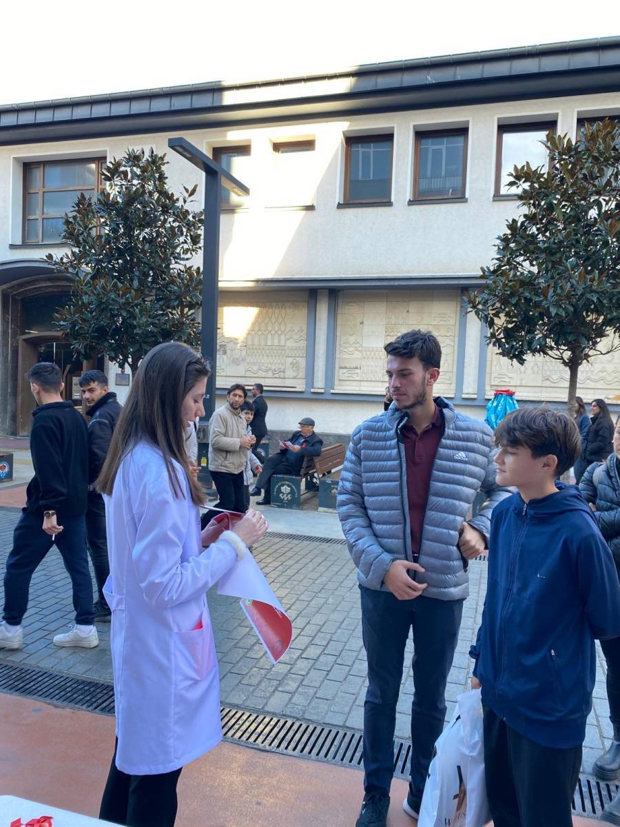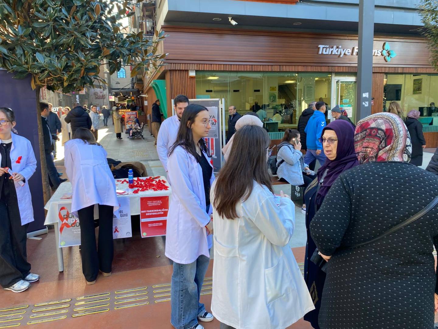 Fakültemiz öğrencileri, AIDS’e karşı toplumda farkındalığı artırmak amacıyla sahada bilgilendirme etkinliği düzenledi. Geleceğin doktorları, HIV/AIDS konusunda doğru ve güncel bilgiye erişimi desteklemek için vatandaşlarla birebir iletişim kurdu.