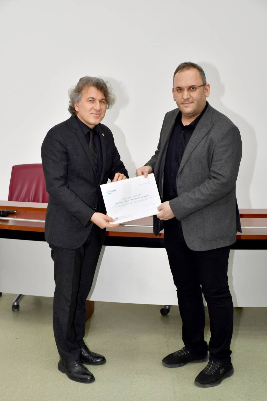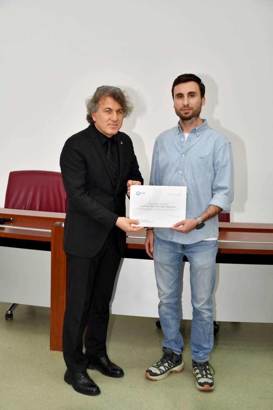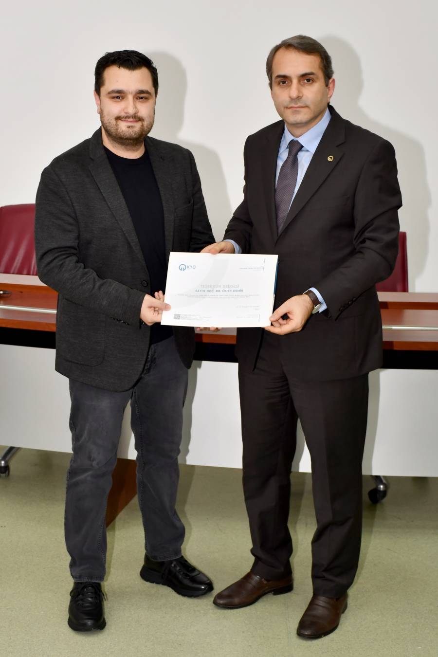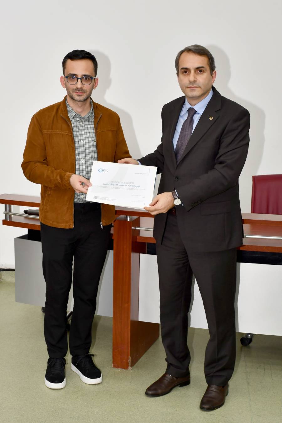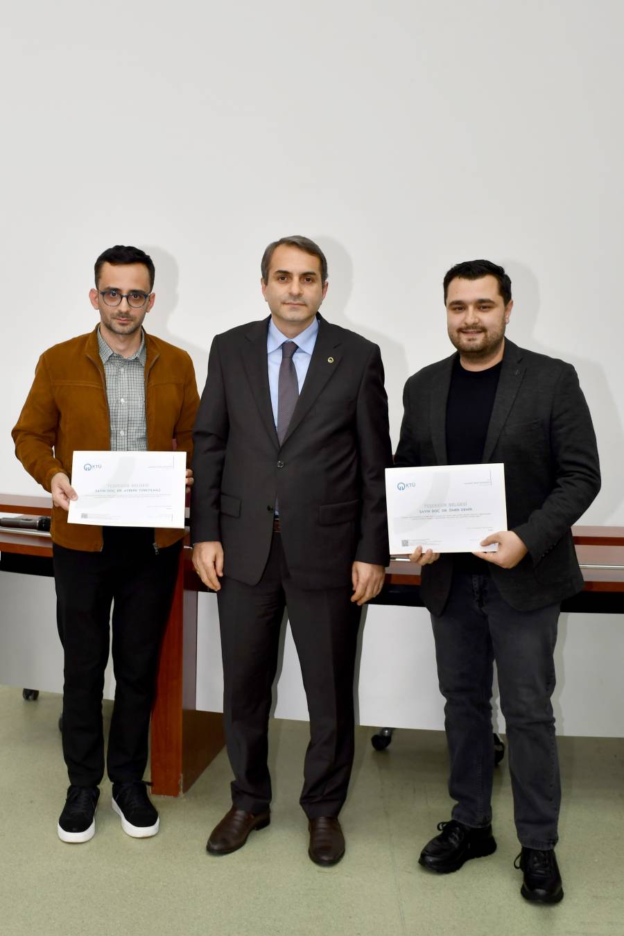 Genel kurul kapsamında, 2024 yılı KTÜ AVESİS akademik performans puanlarına göre ilk üç sırada yer alan öğretim üyelerimiz ile TÜBİTAK 2209-Üniversite Öğrencileri Araştırma Projeleri kapsamında 2025 yılı içerisinde en fazla danışmanlık yapan öğretim üyemize teşekkür belgeleri takdim edildi.