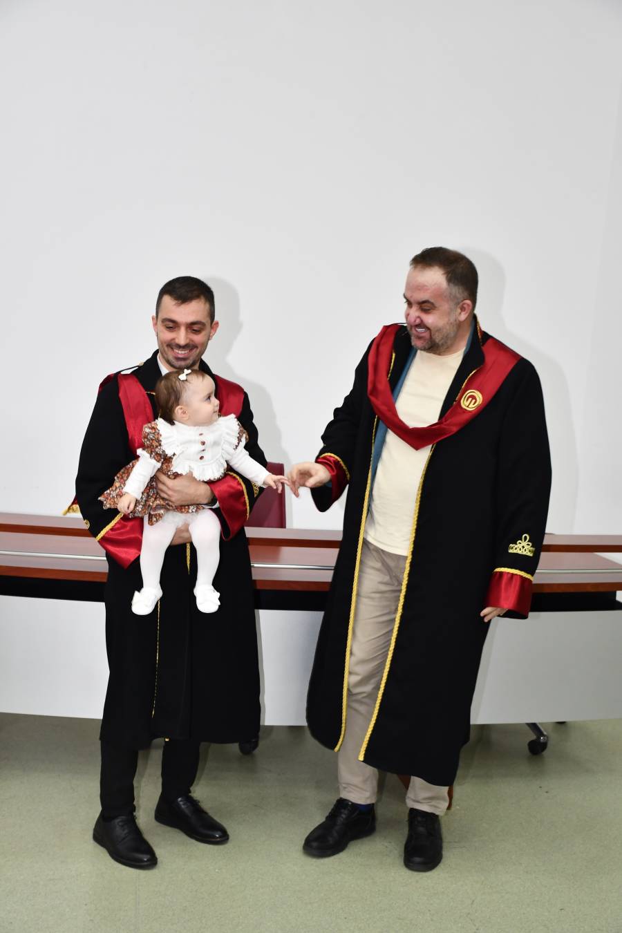 Programın devamında, akademik yükselme sürecini başarıyla tamamlayan ve fakültemizde göreve yeni başlayan öğretim üyelerimiz için düzenlenen cübbe giyme töreni, akademik kariyerin sürekliliğini ve kurumsal aidiyeti simgeleyen anlamlı bir bölüm olarak gerçekleştirildi.