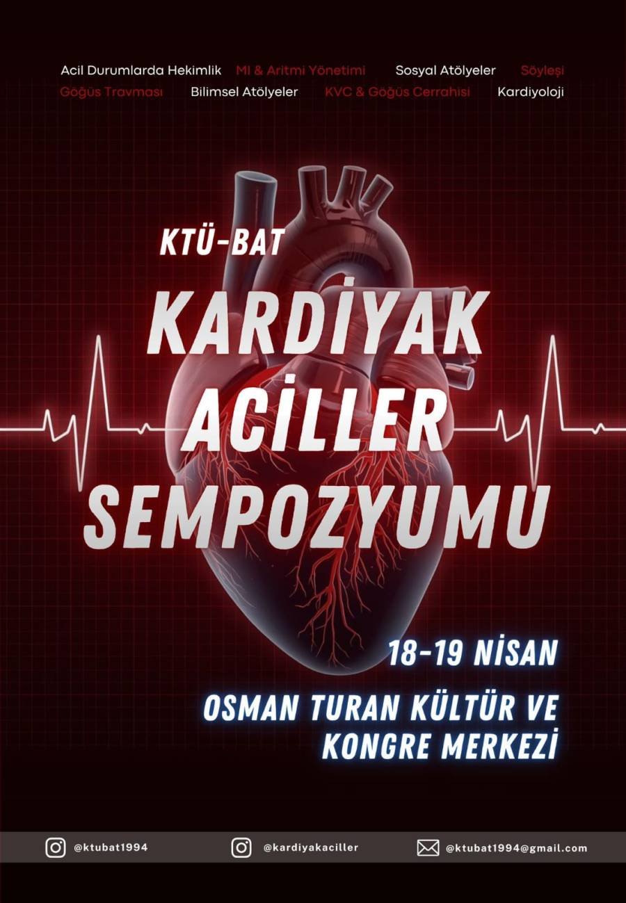 Fakültemiz Bilimsel Araştırma Topluluğu (KTÜ-BAT) tarafından 18-19 Nisan 2026 tarihlerinde Prof. Dr. Osman Turan Kültür ve Kongre Merkezi'nde "Kardiyak Aciller Sempozyumu" gerçekleşti.