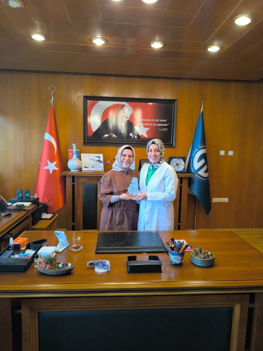 Fakültemizde uzmanlık eğitimlerini tamamlayan; İç Hastalıkları Anabilim Dalından Uzm. Dr. Şeymanur SERDAR KILIÇASLAN, Halk Sağlığı Anabilim Dalından Uzm. Dr. Hilal ÇANKAYA, Nöroloji Anabilim Dalından Uzm. Dr. Sezgin KOLA ve Uzm. Dr. Ayşe Nur KOCABAŞ ile İç Hastalıkları Anabilim Dalından Yandal Uzm. Dr. Özlem KANBUROĞLU MELETLİ'ye Dekanımız Prof. Dr. Sevdegül AYDIN MUNGAN tarafından plaketleri takdim edildi.