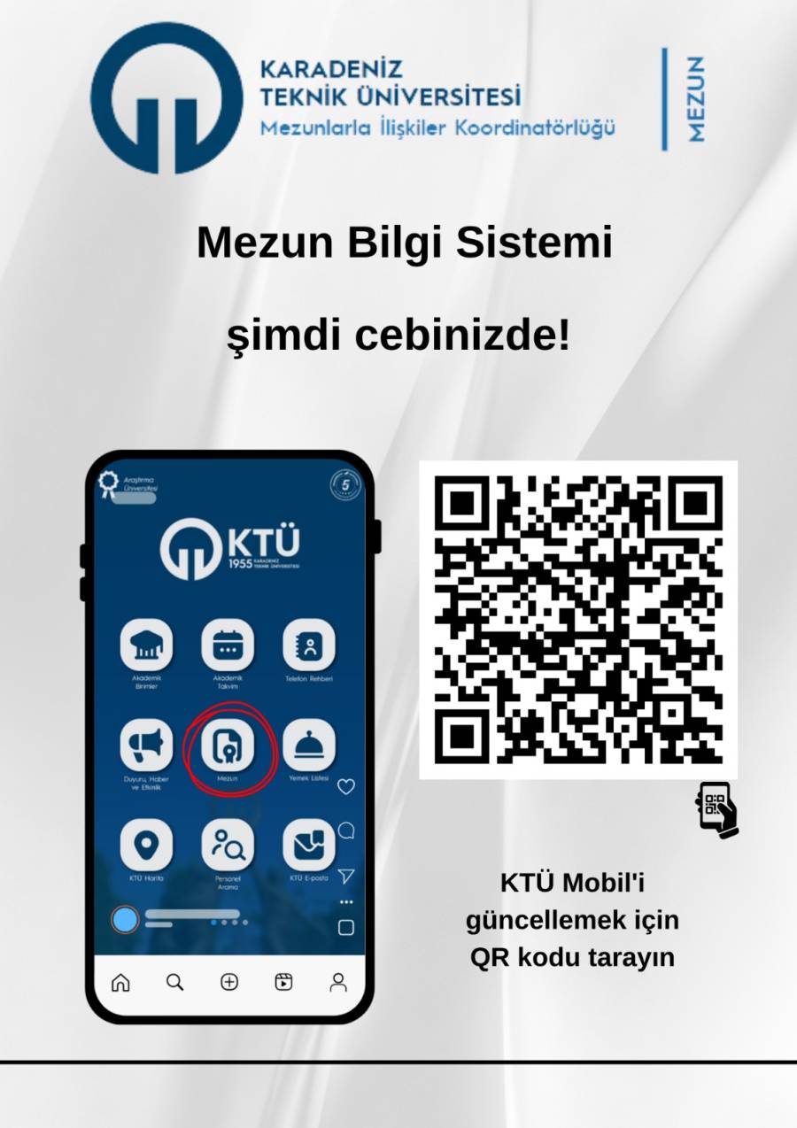 KTÜ Mobil uygulamanızı güncelleyrek Mezun Bilgi Sistemini aktfi kullanmaya başlayabilirsiniz.
