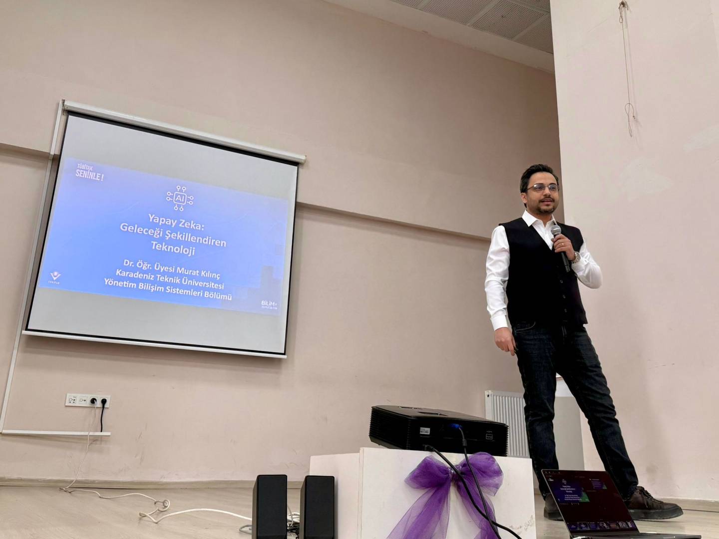 As part of the TÜBİTAK Science Talks program, a science talk titled “Artificial Intelligence: Technology Shaping the Future,” presented by Dr. Murat Kılınç, was held on March 6, 2026, at Sürmene Hasan Tahsin Kırali Anatolian High School with the enthusiastic participation of students.