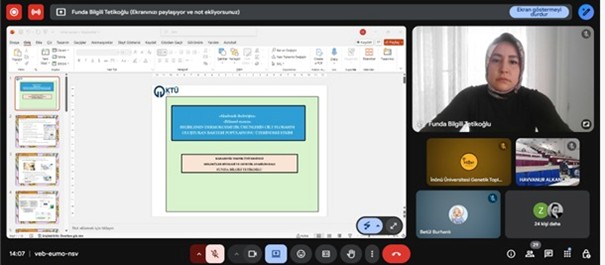 Karadeniz Teknik Üniversitesi Moleküler Biyoloji ve Genetik Bölümü Araştırma Görevlisi Funda Bilgili Tetikoğlu, İnönü Üniversitesi Moleküler Biyoloji ve Genetik Bölümü tarafından düzenlenen 2 günlük 'İNÜGEN Mezun Zirvesi' etkinliğine çevrim içi konuşmacı olarak katıldı.