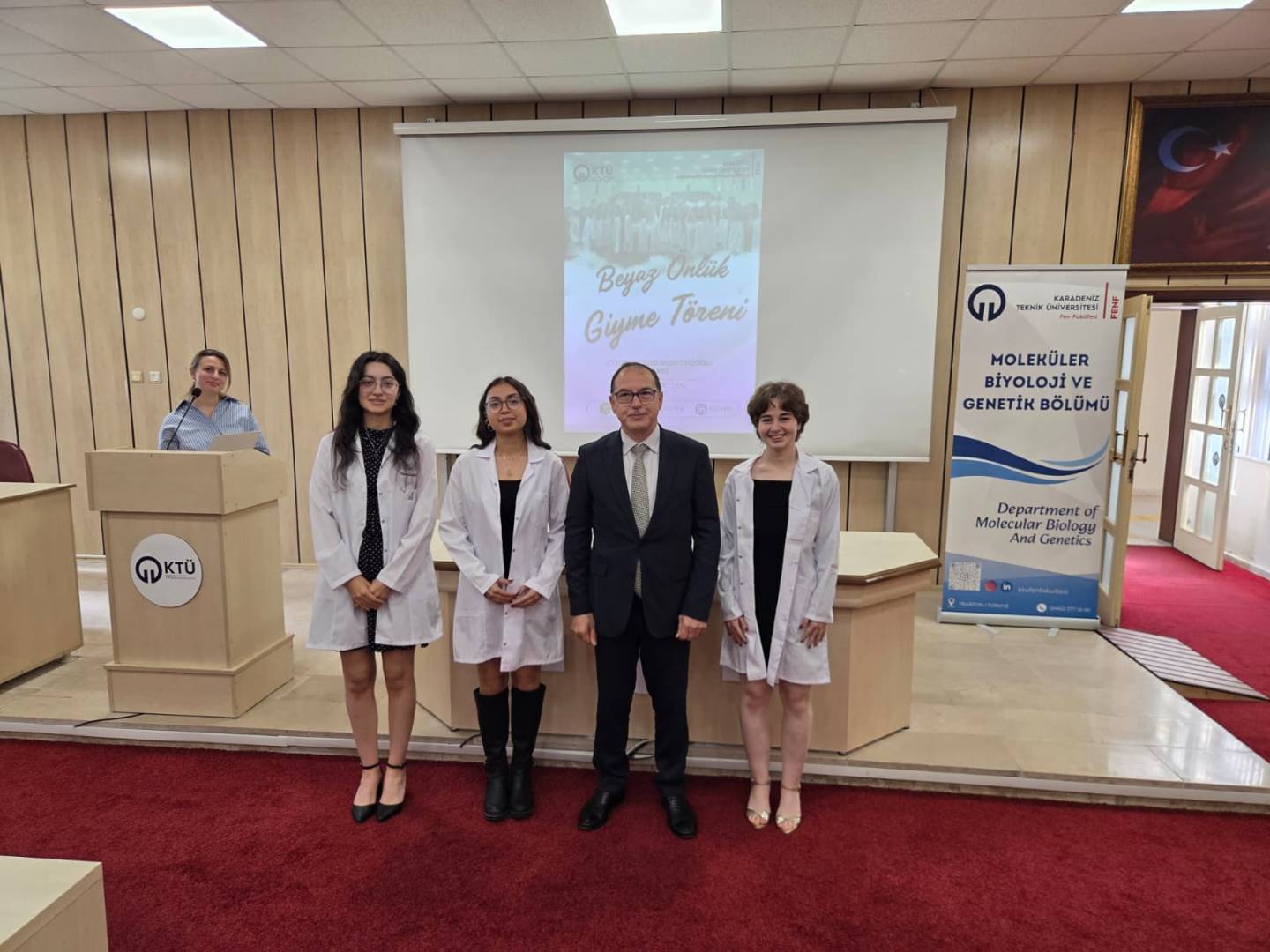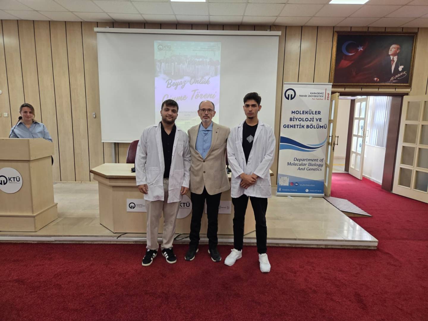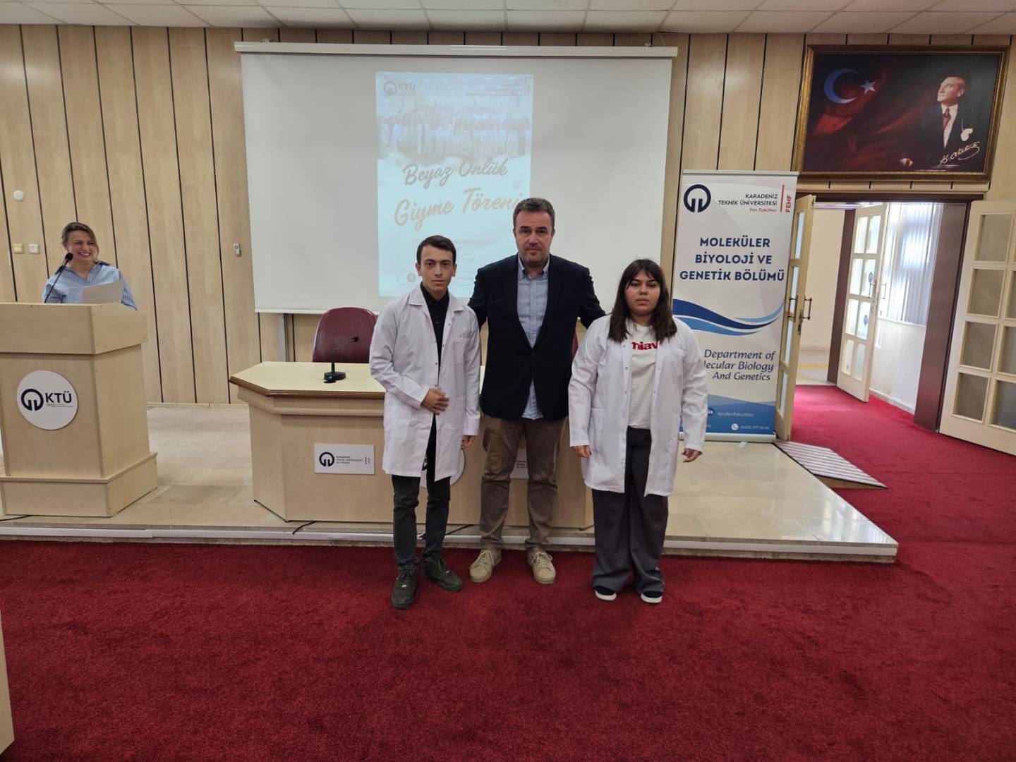 Moleküler Biyoloji ve Genetik Bölümü’ne yeni katılan 1. sınıf öğrencilerine yönelik Önlük Giyme Töreni, 3 Ekim 2025 Cuma günü saat 10.00’da Fen Fakültesi Nazım Terzioğlu Amfisinde gerçekleştirildi.