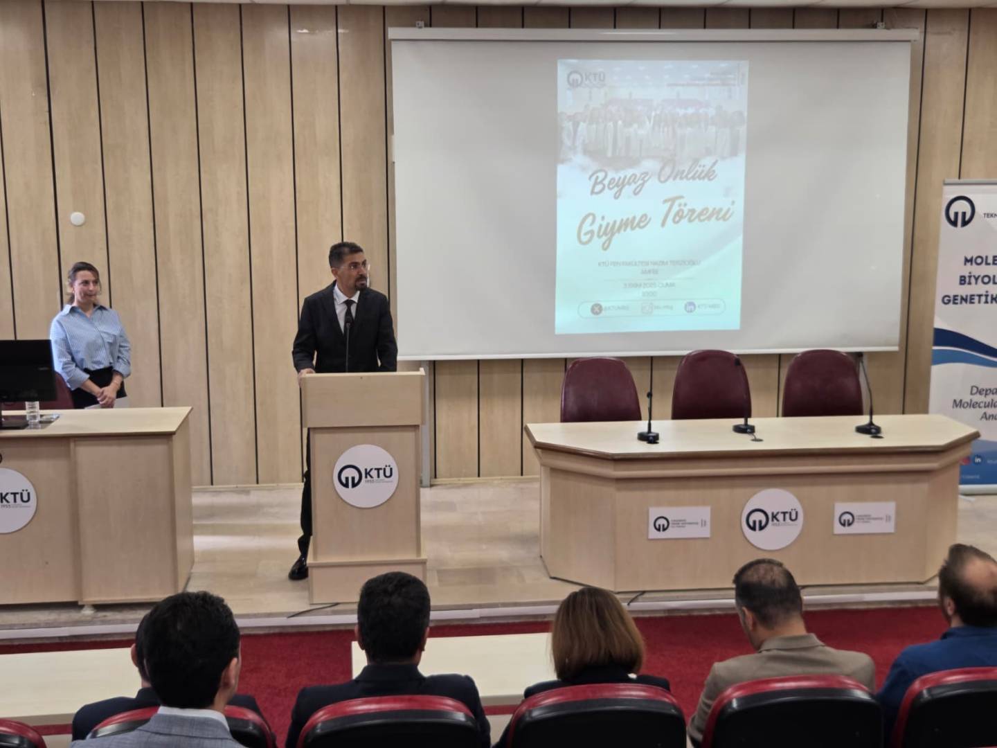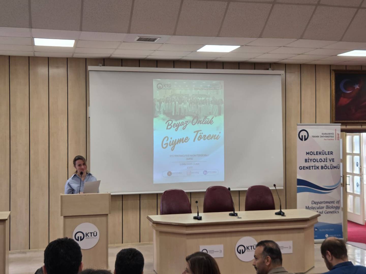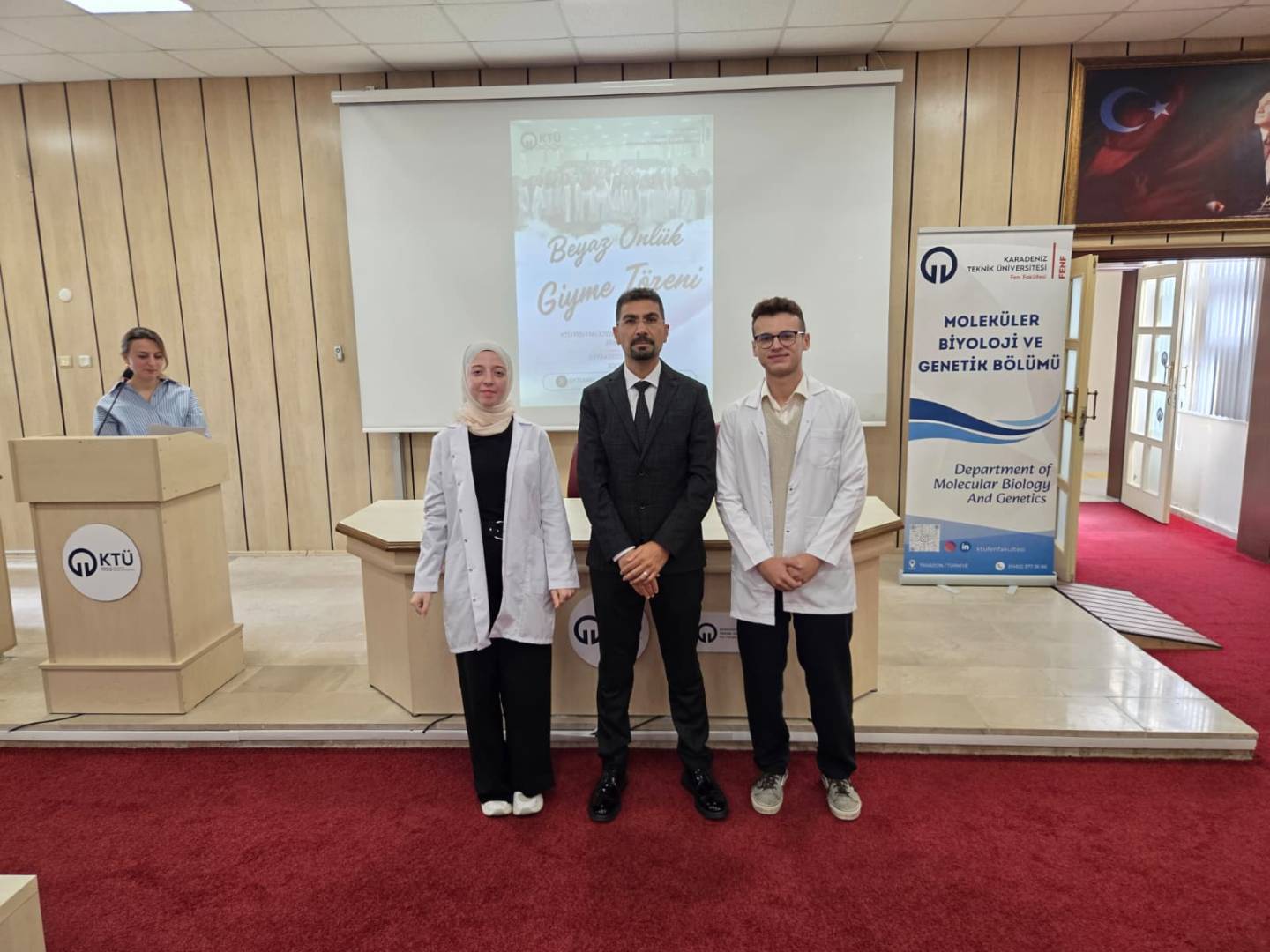 Moleküler Biyoloji ve Genetik Bölümü’ne yeni katılan 1. sınıf öğrencilerine yönelik Önlük Giyme Töreni, 3 Ekim 2025 Cuma günü saat 10.00’da Fen Fakültesi Nazım Terzioğlu Amfisinde gerçekleştirildi.