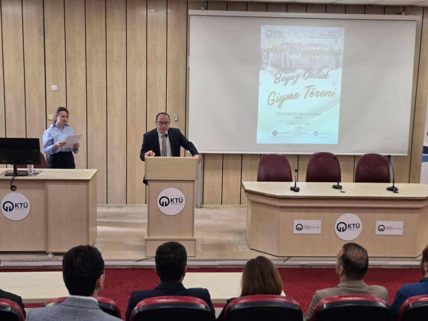 Açılış konuşmasının ardından Fen Fakültesi Dekanı Prof. Dr. Ali Osman BELDÜZ ve Rektör Yardımcısı Prof. Dr. Ömer Faruk URSAVAŞ, öğrencilere başarı dileklerinde bulundular. Konuşmalarında, üniversite eğitiminin önemine ve bilimin rehberliğinde ilerlemenin gerekliliğine değindiler. Törene ayrıca Fen Fakültesi Dekan Yardımcısı Prof. Dr. Nurhayat ÖZDEMİR, KTÜ Dış İlişkiler Genel Koordinatörü Prof. Dr. Sercan EROL, Kimya Bölümü Başkanı Prof. Dr. Sedat KELEŞ, bölümümüz öğretim üyeleri, öğrenciler ve veliler katılım sağladı.