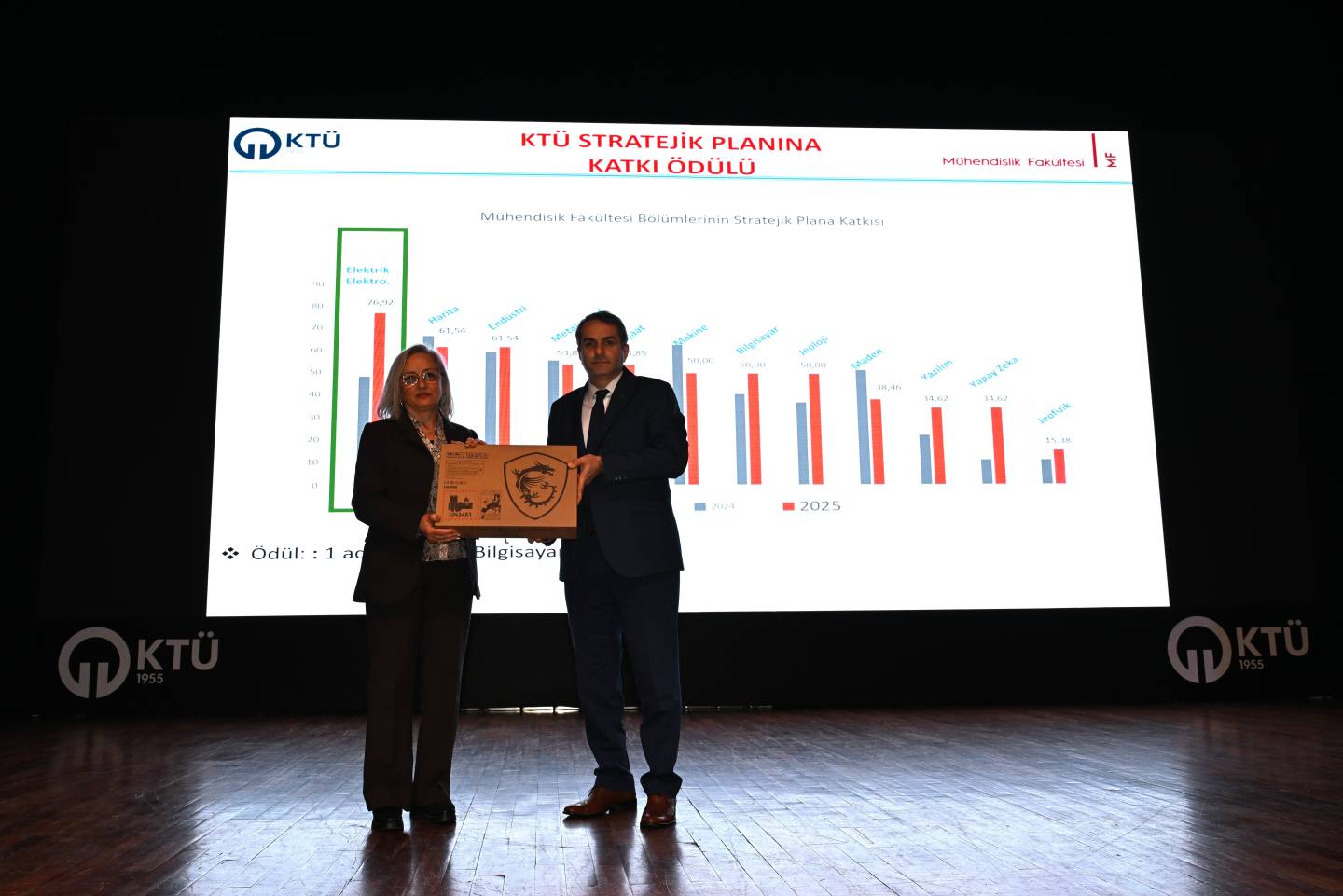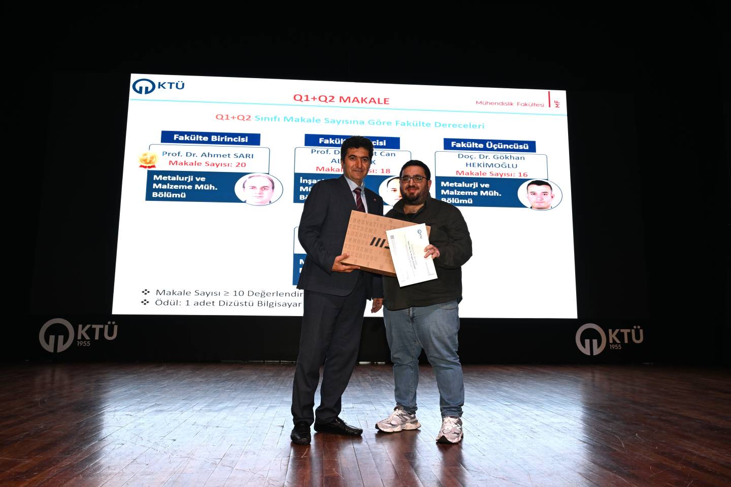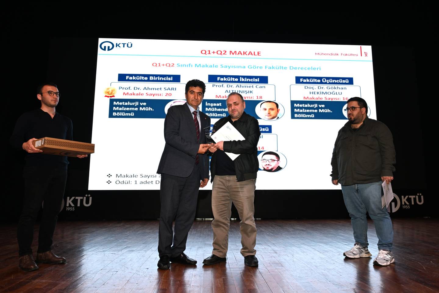 Rektörümüz Prof. Dr. Hamdullah Çuvalcı başta olmak üzere çok sayıda yönetici, sivil toplum kuruluşu, kamu kurum ve kuruluş temsilcisi, akademik ve idari personelimizin katıldığı kurulun en dikkat çekici bölümlerinden biri ödül ve teşekkür belgelerinin takdimi oldu. Akademik performansı teşvik etmeye yönelik kurgulanan ödül sisteminde, dizüstü bilgisayar ve tablet kategorileri öne çıktı. Fakülte genel başarı sıralaması, stratejik plana katkı, “En Başarılı Genç Bilim İnsanı” ve SCI-E kapsamında Q1+Q2 makale üretimi gibi üst düzey başarı kriterlerinde dereceye giren akademisyenlere dizüstü bilgisayar verildi. Akademik teşvik puanı, proje bütçesi, Horizon proje başvuruları, patent performansı ve uluslararası iş birlikli yayınlar gibi alanlarda öne çıkan öğretim üyeleri ve araştırma görevlileri ise tablet ile ödüllendirildi.