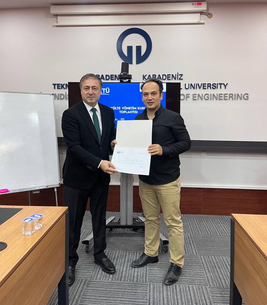 Prof. Dr. Temel TÜRKER'e, tescil edilen patenti dolayısıyla teşekkür belgesi takdim edildi.