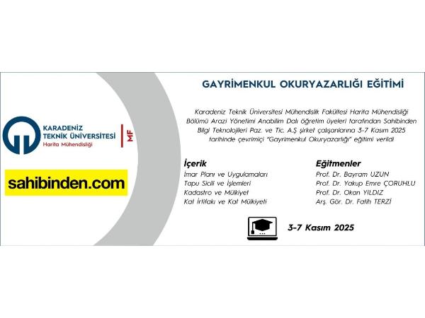 Sahibinden Bilgi Teknolojileri Pazarlama ve Tic. A.Ş. çalışanlarına yönelik ''Gayrimenkul Okuryazarlığı'' eğitimi 3-7 Kasım 2025 tarihleri arasında çevrim içi olarak gerçekleştirildi.
