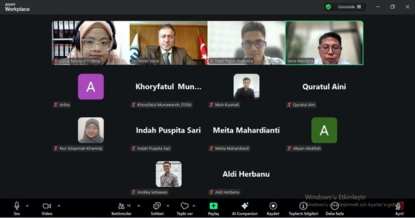 Uluslararası Proje İşbirliği Kapsamında Fakültemiz ile Institute Teknologi Sumatera (ITERA) arasında SEA EU JFS - Güneydoğu Asya ve Avrupa Ülkeleri Ortak Fonlama Programı ile ilgili çevrimiçi toplantı gerçekleştirildi.