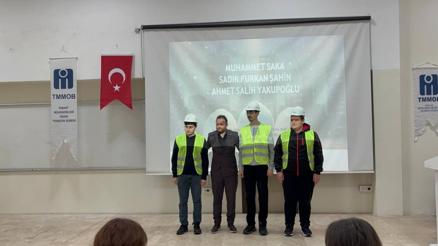 İMO Trabzon Şubesi Yönetim Kurulu Üyesi Zehra Gül Turhan inşaat mühendisi olmanın sorumluluğu ve önemine dair kısa bir konuşma gerçekleştirmiştir. Etkinlik 1.sınıf öğrencilerine baret takılmasıyla tamamlanmıştır.