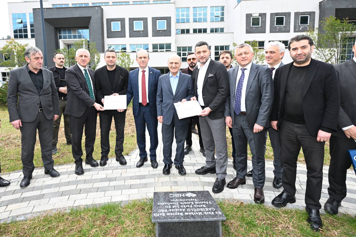 Kurdele kesiminin ardından Rektörümüz Sayın Prof. Dr. Hamdullah Çuvalcı, Hayırsever İş İnsanları Eşref ve Neşat Çakıroğlu kardeşlere teşekkür belgesi verdi.