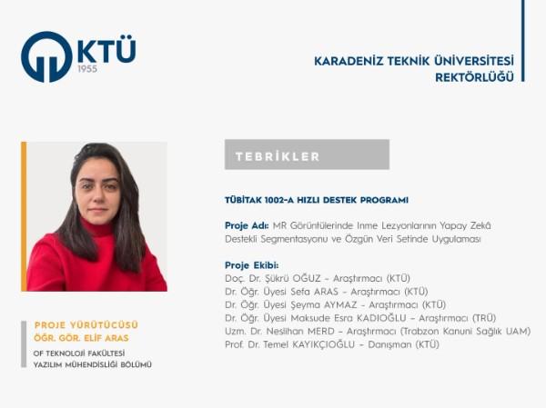 Öğr. Gör. Elif ARAS'a TÜBİTAK 1002-A Hızlı Destek Programı Proje Desteği