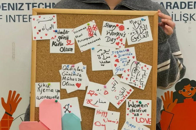 Female members of the International Student Club came together at the Office of International Relations event hall to celebrate International Women’s Day on March 8. Students from different countries participated in the gathering, where they prepared handmade gifts through origami activities and exchanged presents with one another. During the event, participants also wrote messages on a wish board, sharing their thoughts on women’s solidarity, equality, and peace. The event, held in a warm and friendly atmosphere, became a meaningful gathering that strengthened cultural exchange and solidarity among international students.