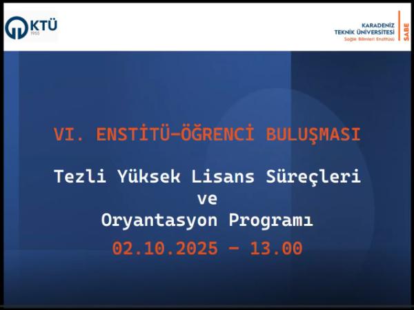 Yüksek Lisans Öğrencilerimize Yönelik VI. Yüksek Lisans Öğrenci Bulusması çevrim içi olarak 02 Ekim 2025 tarihinde saat 13.00 da gerçekleştirildi.