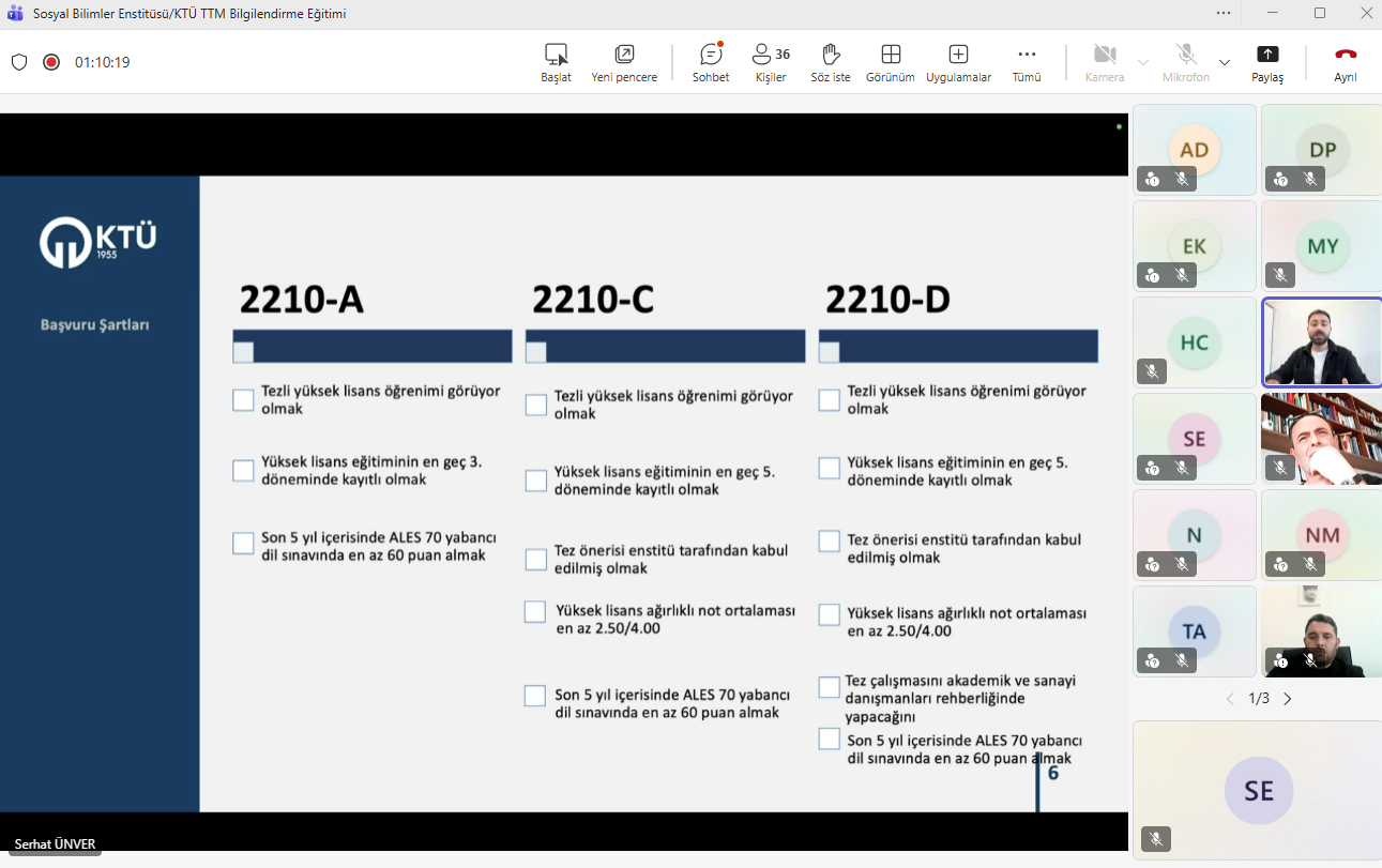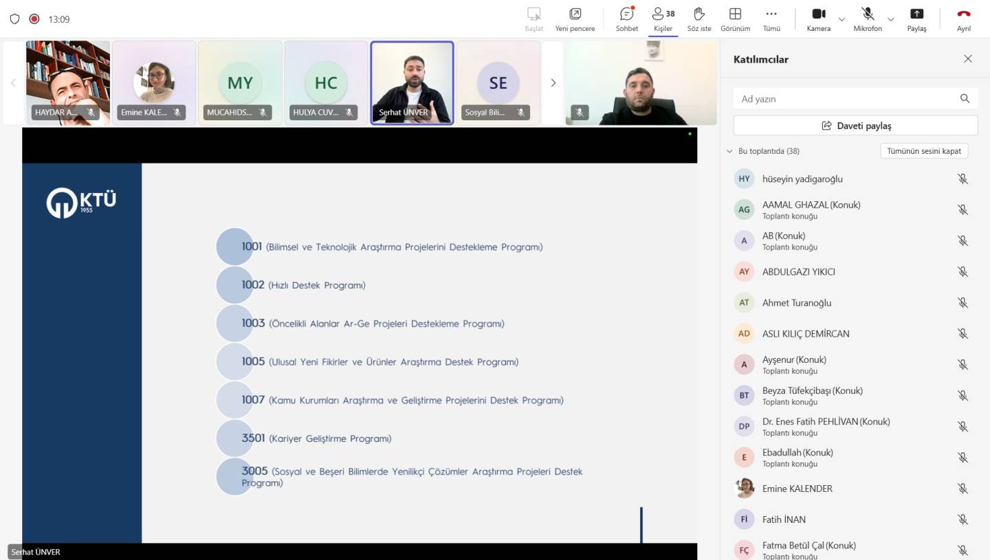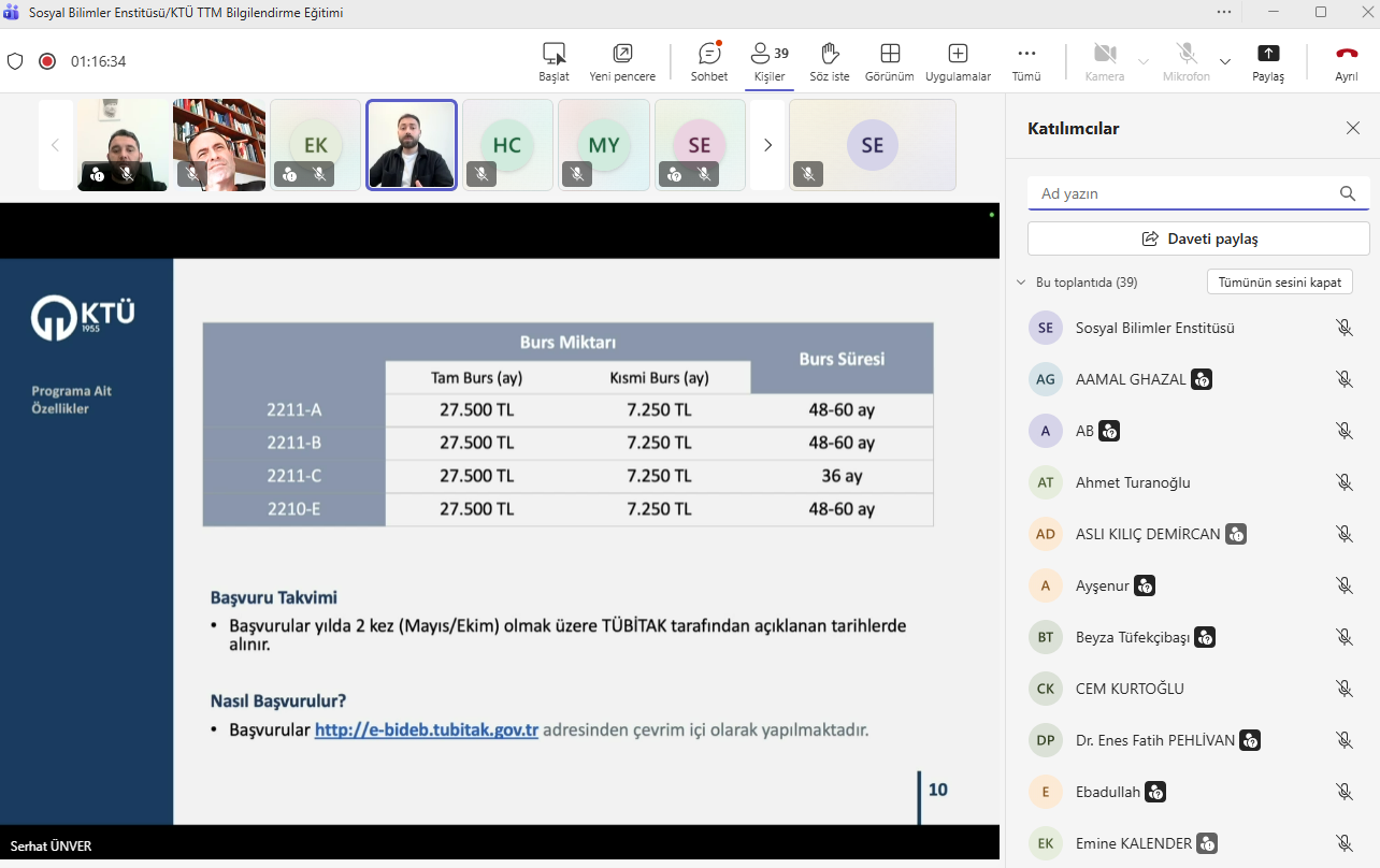 Enstitümüzce, KTÜ TTM İş Birliği ile 06 Kasım 2025 saat 15.00’te COST programları, TÜBİTAK ARDEB ve BİDEB programları hakkında çevrim içi “Akademisyen ve Lisansüstü Öğrencilerine Yönelik Destek Programları Bilgilendirme Eğitimi” düzenlenmiştir.
