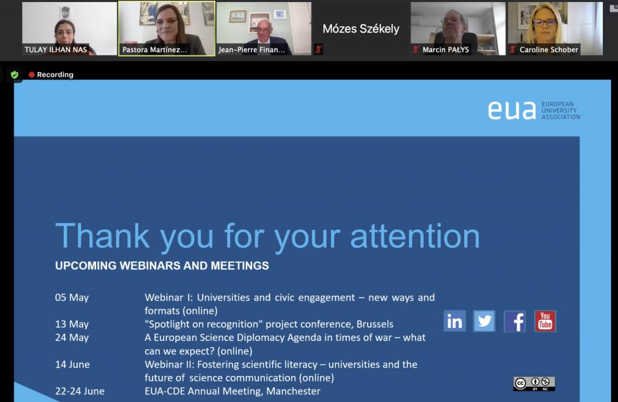 Üniversitemizin üyesi olduğu European University Association (EUA)’nin gerçekleştirdiği çevrimiçi çalıştay 22 Nisan 2022 tarihinde gerçekleştirildi.