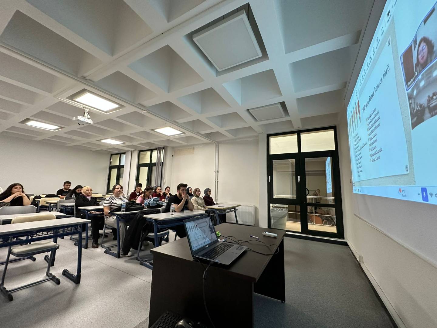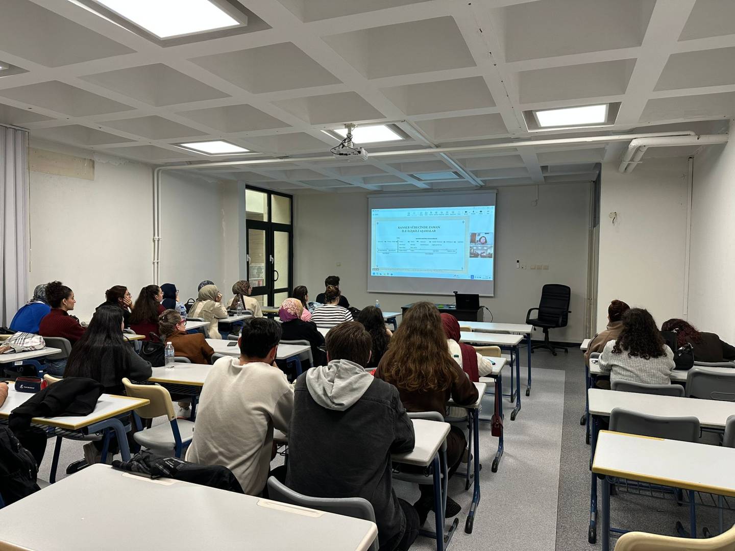 Bölümümüz 3. sınıf güz döneminde zorunlu olarak işlenen FTR-3007 kodlu Fizyoterapide Özel Konular dersi, nadir karşılaşılan hastalık veya tedavi yöntemlerine odaklanmaktadır. 24.10.2025 tarihinde yapılan derse davetli konuşmacı olarak sektör temsilcisi Prof. Dr. İlke Keser katılmış ve Onkolojik hastalıklarda fizyoterapi ve rehabilitasyon uygulamaları ve Lenfödem rehabilitasyonu konularını anlatmıştır. Kanser hastalarına yapılan tedavilerde dikkat edilmesi ve kaçınılması gereken noktaları detaylı olarak anlattı. Kanserin her klinikte oldukça sık rastlanan bir hastalık olmasına rağmen kanser tanısı almış olan hastalara zarar vermeden fizyoterapi ve rehabilitasyon süreçlerimizi nasıl yönetmemiz gerektiğinin önemine değindi.