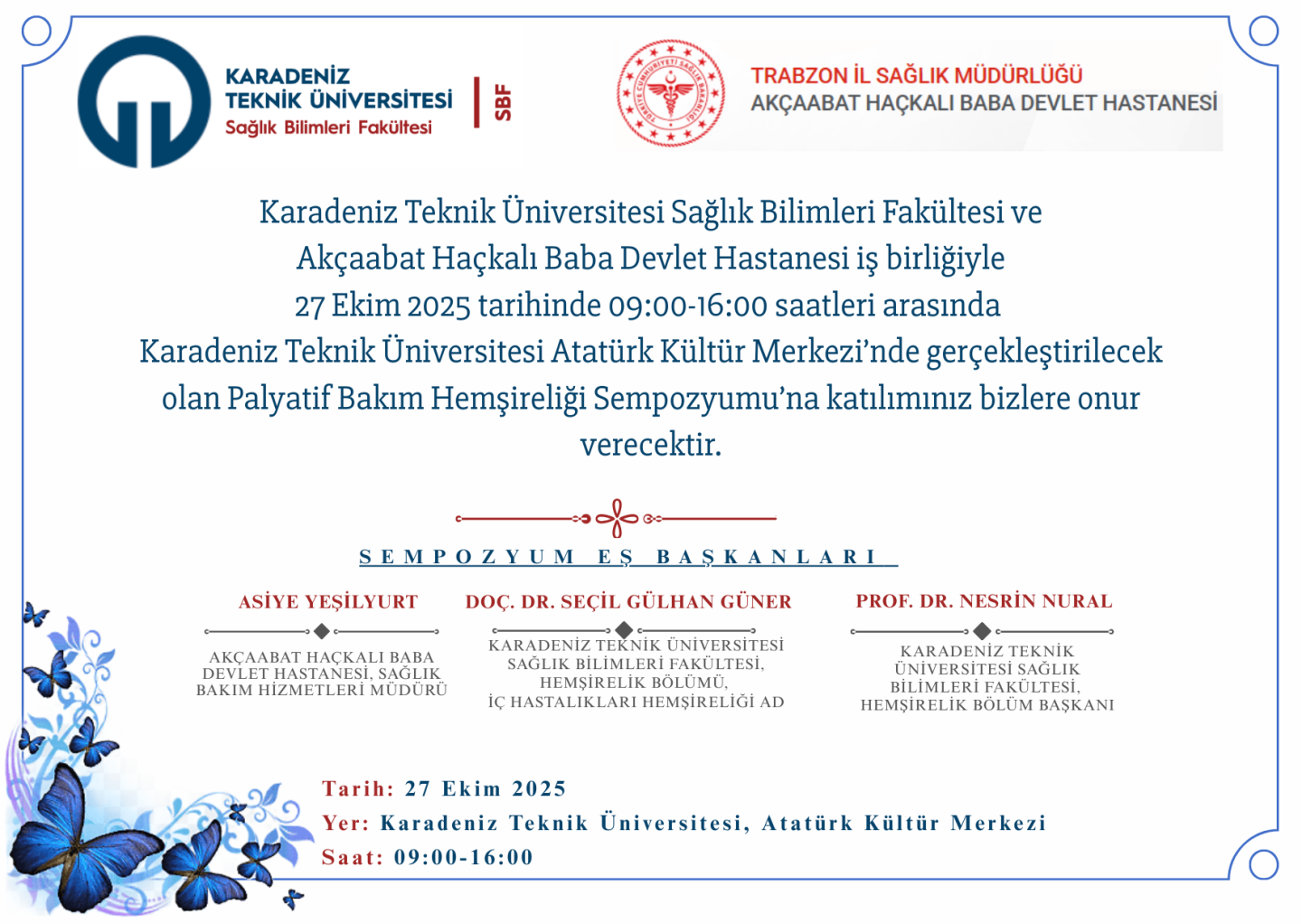Karadeniz Teknik Üniversitesi Sağlık Bilimleri Fakültesi Hemşirelik Bölümü ve Akçaabat Haçkalı Baba Devlet Hastanesi iş birliğiyle, bakımın en derin ve anlamlı yönüne odaklanmak için sizleri bekliyoruz.