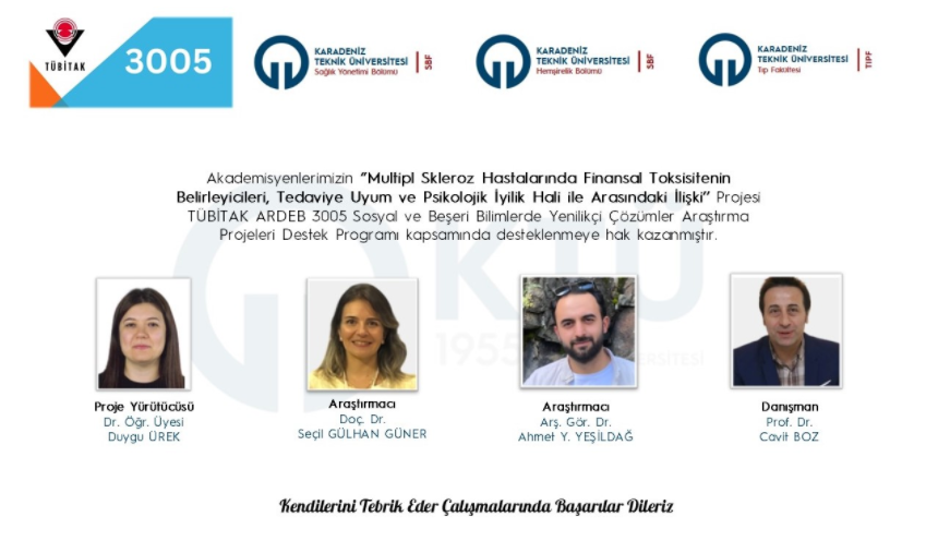 Akademisyenlerimizin ‘’Multipl Skleroz Hastalarında Finansal Toksisitenin Belirleyicileri, Tedaviye Uyum ve Psikolojik İyilik Hali ile Arasındaki İlişki’’ Projesi TÜBİTAK ARDEB 3005 Sosyal ve Beşeri Bilimlerde Yenilikçi Çözümler Araştırma Projeleri Destek Programı kapsamında desteklenmeye hak kazanmıştır.