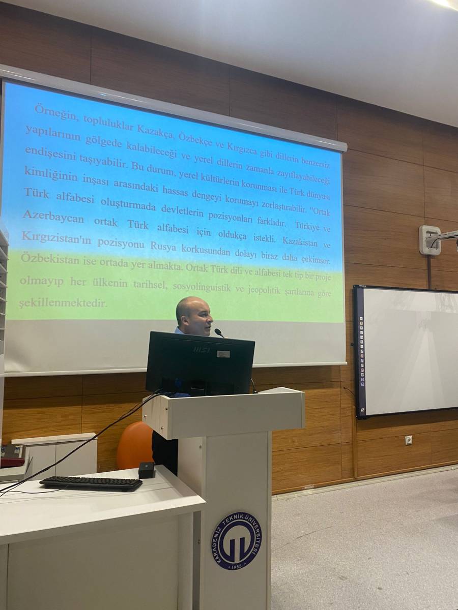 Prof. Dr. Bilgehan Atsız Gökdağ’ın konuşmacı olarak katıldığı “100. Yılında Bakü Türkoloji Kurultayı ve Yansımaları” başlıklı etkinlik, 22 Nisan 2026 tarihinde saat 14.00’te Hikmet Öksüz Konferans Salonu’nda gerçekleştirildi.