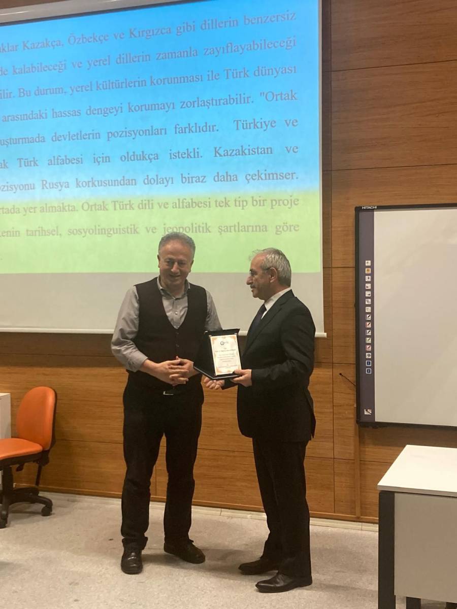 Etkinlikte, 1926 yılında düzenlenen Bakü Türkoloji Kurultayı’nın Türk dili ve edebiyatı araştırmaları açısından önemi ele alınarak, kurultayın Türkoloji çalışmalarına katkıları ve günümüze yansımaları değerlendirildi. Prof. Dr. Gökdağ, konuşmasında kurultayın tarihsel bağlamını, dönemin ilmî atmosferini ve alınan kararların Türk dünyası üzerindeki etkilerini ayrıntılı bir şekilde aktardı.
