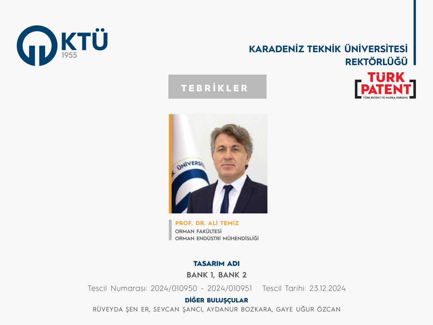 Tasarım başvurusu tescillenen akademisyenimizi ve buluşçuları tebrik eder, sağladıkları katkılardan ötürü akademisyenimize ve buluşçulara teşekkür ederiz.