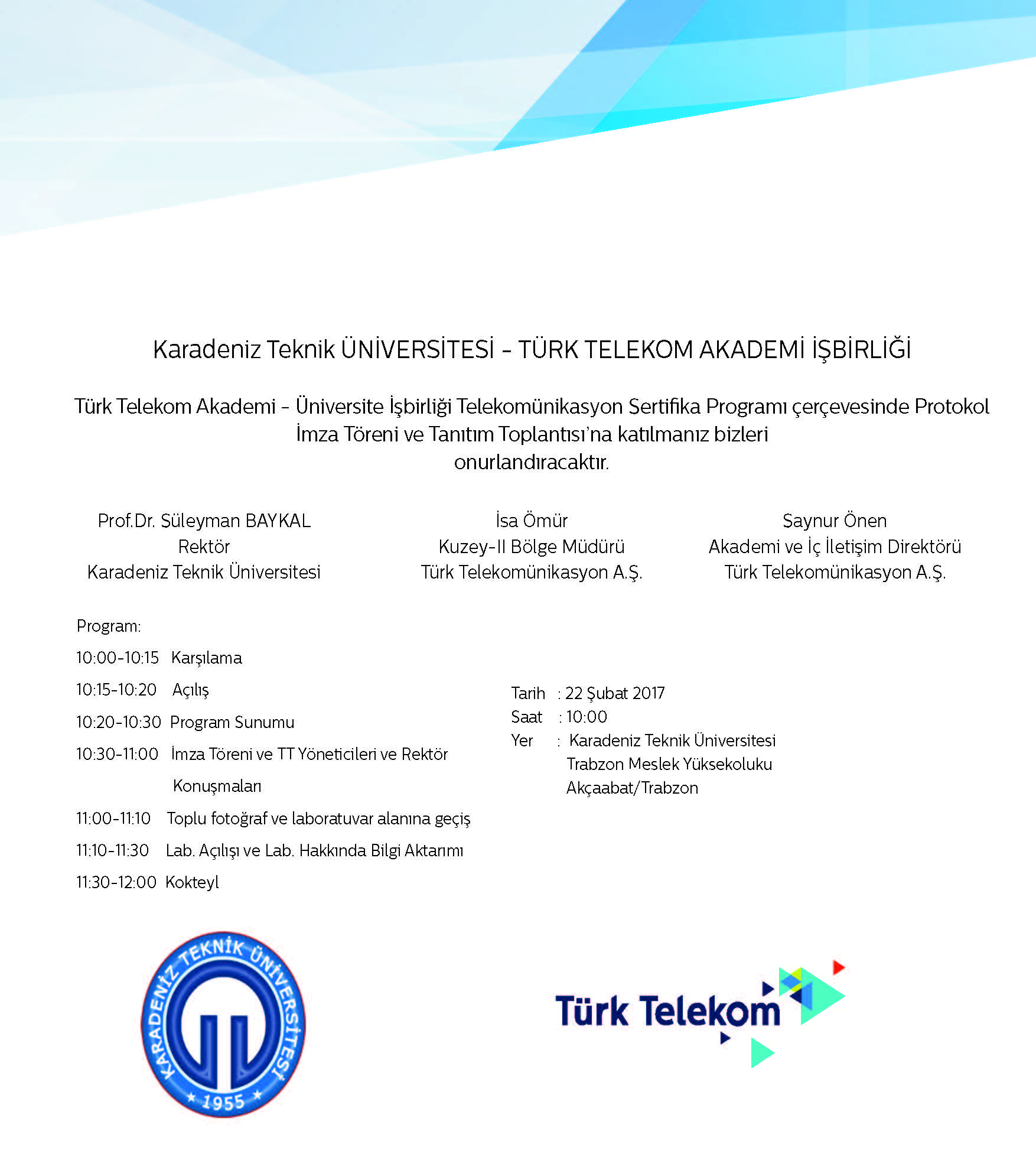 KTÜ-Türk Telekom Akademi İşbirliği Telekomünikasyon Sertifika Programı Çerçevesinde Protokol İmza Töreni ve Tanıtım Toplantısı