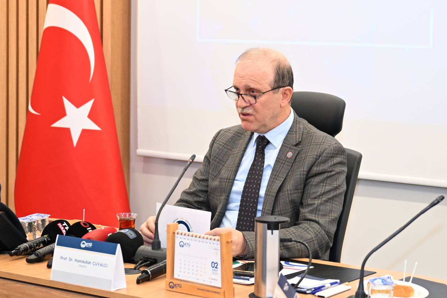 Rektörlük Senato Salonu’nda düzenlenen ve Rektörümüz Prof. Dr. Hamdullah ÇUVALCI, Rektör Yardımcısı Prof. Dr. Ömer Faruk URSAVAŞ, Tıp Fakültesi Dekanı Prof. Dr. Sevdegül Aydın MUNGAN’ın katılımıyla gerçekleştirilen basın toplantısında, kolorektal kanser tedavisine yönelik geliştirilen yeni antikanser bileşikleri kamuoyuyla paylaşıldı. Toplantının açılışı, Rektörümüz Prof. Dr. Hamdullah ÇUVALCI tarafından yapıldı. Açılışta bir konuşma yapan Rektörümüz, “Karadeniz Teknik Üniversitesi olarak bilimi, insan hayatına doğrudan dokunan çözümlere dönüştürmeyi, temel bir sorumluluk olarak görüyoruz. Bugün, kamuoyuyla paylaştığımız bu çalışma da Üniversitemizin sağlık alanındaki nitelikli araştırma kapasitesinin somut bir örneğidir. Bu değerli çalışmada emeği geçen tüm akademisyenlerimizi ve araştırmacılarımızı tebrik ediyor, elde edilen sonuçların da gelecekte kolorektal kanser tedavisinde daha etkili ve hasta dostu yaklaşımlara katkı sağlamasını temenni ediyorum.” dedi.