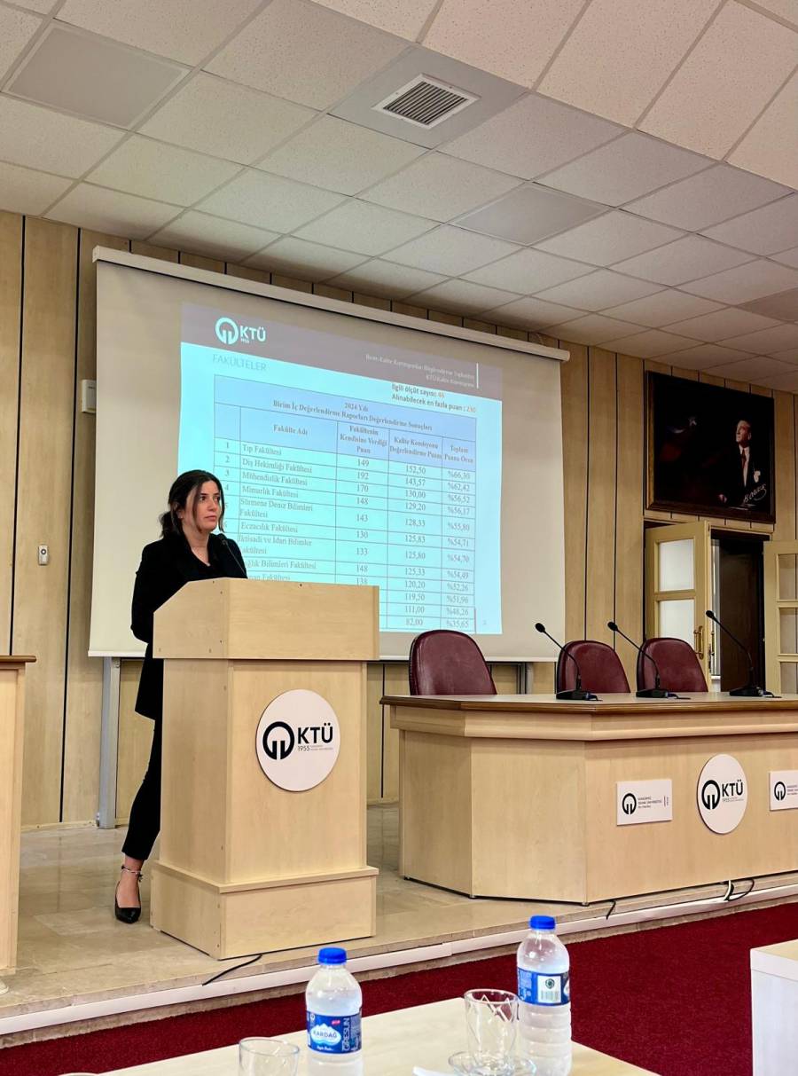 Tüm akademik ve idari birimlerin yöneticileri ve Kalite Komisyonu Üyesi personelin katıldığı toplantıda, Stratejik Plan ve Kalite Güvence Sistemi’nden Sorumlu Rektör Danışmanı Öğr. Gör. Ali Haydar DOĞU tarafından Yükseköğretim Kalite Kurulu’nun (YÖKAK) son dönemdeki faaliyetlerini, yükseköğretim kurumlarındaki akreditasyon verilerini, Üniversitemizin Kurumsal Akreditasyon Raporu’nda yer alan gelişmeye açık yönlerini ve Yükseköğretim Kurulu (YÖK) tarafından başlatılan “2030’a Doğru Türk Yükseköğretim Vizyonu Eylem Planı”nın Kalite Güvence Sistemi ile ilişkisini içeren genel bir bilgilendirme sunumu yapıldı. Üniversitemiz Kalite Komisyonu Üyesi Dr. Öğr. Üyesi Ebru AŞIK tarafından da tüm akademik ve idari birimlerce hazırlanan 2024 yılına ait Kalite Raporu’nun (BİDR) detaylı bir analizi yapıldı.