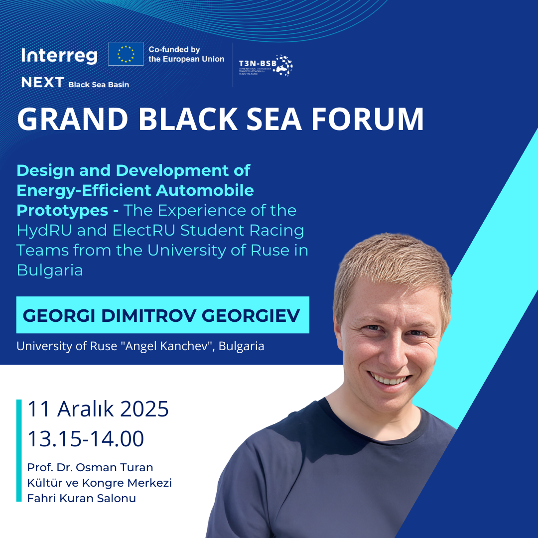 Georgi Dimitrov GEORGIEV, ”Yükselen ve Olgunlaşmış Teknolojiler Bulgaristan Örneği” seminerinde katılımcılara "Design and Development of Energy-Efficient Automobile Prototypes - The Experience of the HydRU and ElectRU Student Racing Teams from the University of Ruse in Bulgaria" konulu teknoloji odağında bilgilendirmelerde bulunacak.
