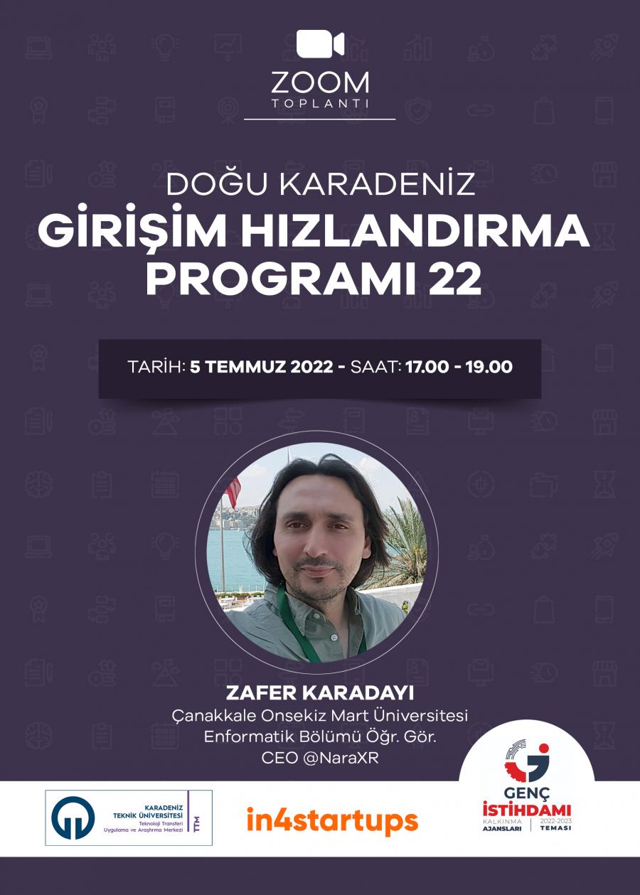 Çanakkale 18 Mart Üniversitesi Öğretim Görevlisi ve NaraXr Kurucusu Zafer Karadayı’dan deneyimlerini dinlemek için 05.07.2022 Salı günü (bugün) saat 17:00’da sizleri bekliyoruz. KTÜ TTM tarafından yürütülen ve in4startup tarafından organize edilen hızlandırıcı programında gerçekleştirilecek olan seminerlere katılım için takipte kalın.