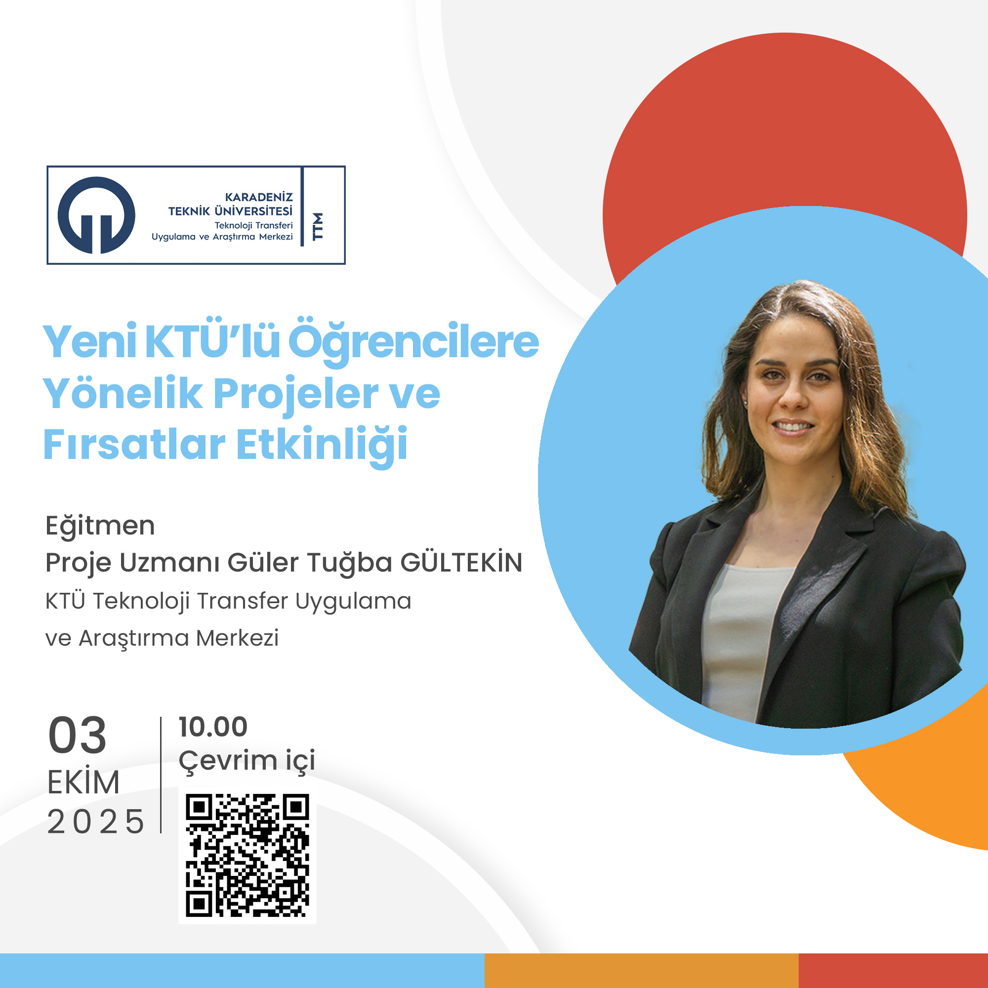 KTÜ Teknoloji Transferi Uygulama ve Araştırma Merkezi tarafından yeni öğrencilerimize yönelik “Projeler ve Fırsatlar Etkinliği” düzenlenecektir.
