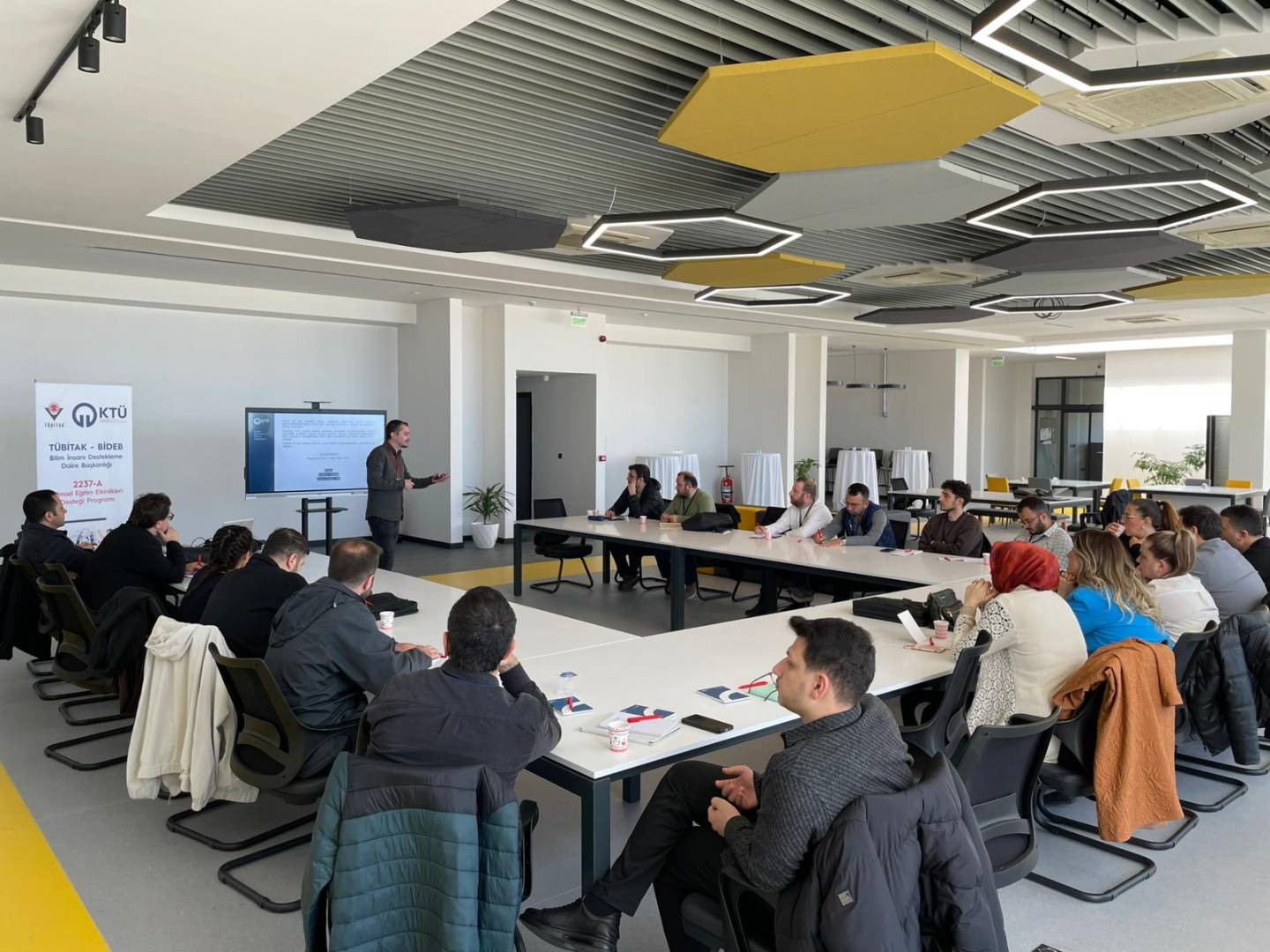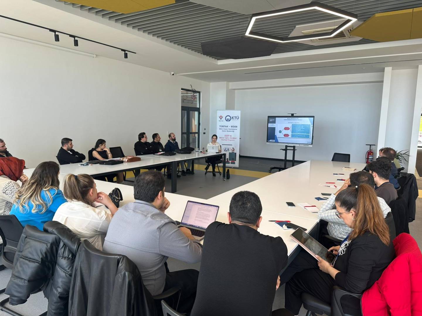 TÜBİTAK 2237-A Programı kapsamında, Prof. Dr. Esat GÜMÜŞKAYA yürütücülüğünde ve Merkezimizin ev sahipliğinde ve koordinasyonunda düzenlenen “Ar-Ge ve Tasarım Merkezlerinde Akademik Danışmanlık Süreçleri ve Üniversite İş Dünyası Etkileşiminde İş Birliği Modelleri” etkinliği, 3 farklı üniversite, 1 belediye ve 8 farklı firmadan toplamda 24 kişinin katılımıyla gerçekleştirildi.