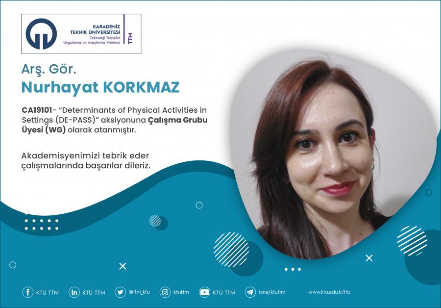 Üniversitemiz Sağlık Bilimleri Fakültesi Fizyoterapi ve Rehabilitasyon Bölümü öğretim üyesi Arş. Gör. Nurhayat KORKMAZ, COST Programı’nın “CA19101 - Determinants of Physical Activities in Settings (DE-PASS) aksiyonuna Çalışma Grubu Üyesi (WG) olarak atanmıştır.