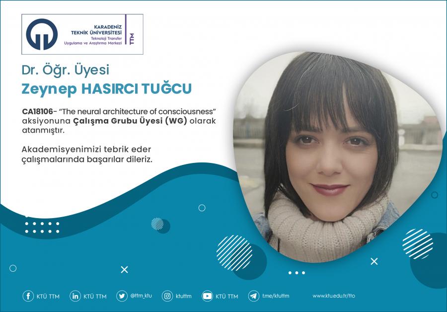 Üniversitemiz Of Teknoloji Fakültesi Elektronik ve Haberleşme Mühendisliği Bölümü öğretim üyesi Dr. Öğr. Üyesi Zeynep HASIRCI TUĞCU, COST Programı’nın “CA18106 - The neural architecture of consciousness” aksiyona Çalışma Grubu Üyesi (WG) olarak atanmıştır.