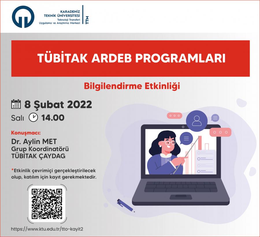 Üniversitemiz akademisyenlerine yönelik TÜBİTAK ARDEB programları tanıtımı ve yapılan değişikliklerle ilgili TÜBİTAK Çevre, Atmosfer, Yer ve Deniz Bilimleri Araştırma Destek Grubu (ÇAYDAG) Grup Koordinatörü Sn. Dr. Aylin MET'in konuşmacı olarak katılacağı çevrimiçi "TÜBİTAK ARDEB Programları Bilgilendirme Etkinliği" düzenlenecektir. Etkinlik 08 Şubat 2022 Salı Saat: 14.00'da başlayacak olup etkinliğe katılmak için etkinlik kayıt formunun doldurulması gerekmektedir.