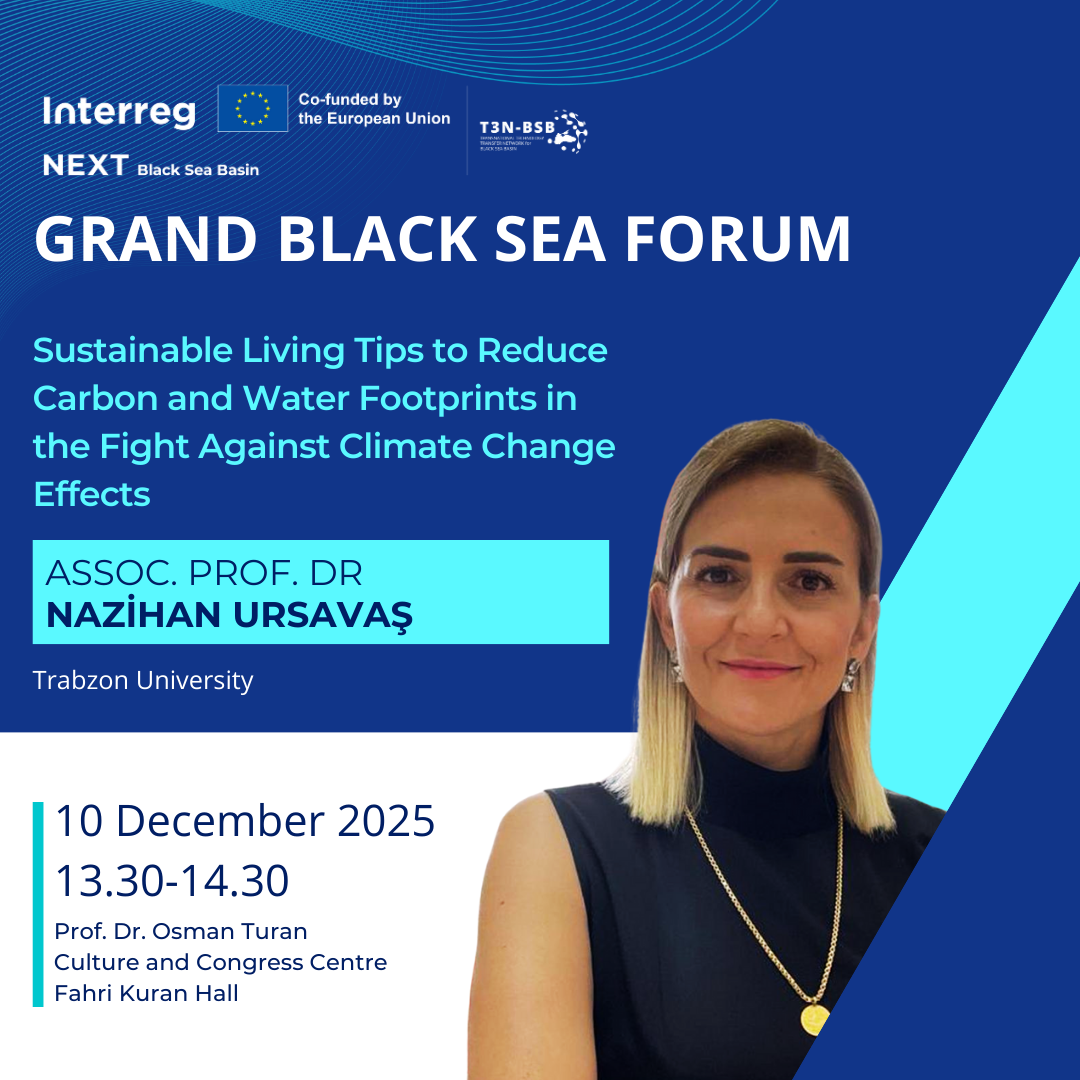 Assoc. Prof. Dr. Nazihan URSAVAŞ will share her knowledge and experience with participants at the Great Black Sea Forum with the seminar titled “Sustainable Living Tips to Reduce Carbon and Water Footprints in the Fight Against Climate Change Effects.”