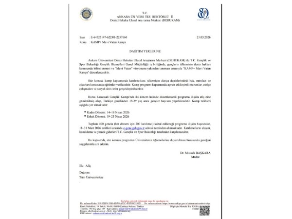 DEHUKAM ve Gençlik ve Spor Bakanlığı iş birliğiyle, gençlere Mavi Vatan vizyonunu tanıtmak amacıyla "KAMP+ Mavi Vatan Kampı" düzenlenecek.